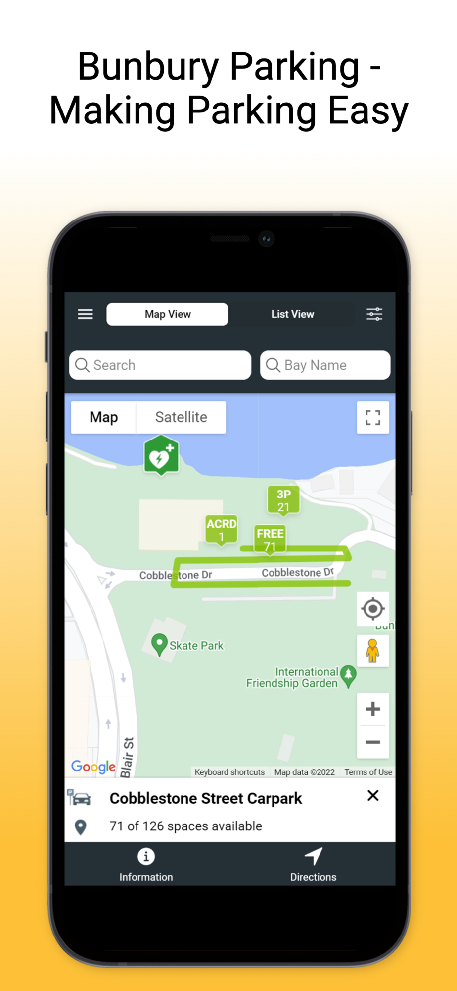 The Park Bunbury app helps you find available parking near your destination. Using real-time data and sensors, the app will direct you to the most convenient parking around the city.