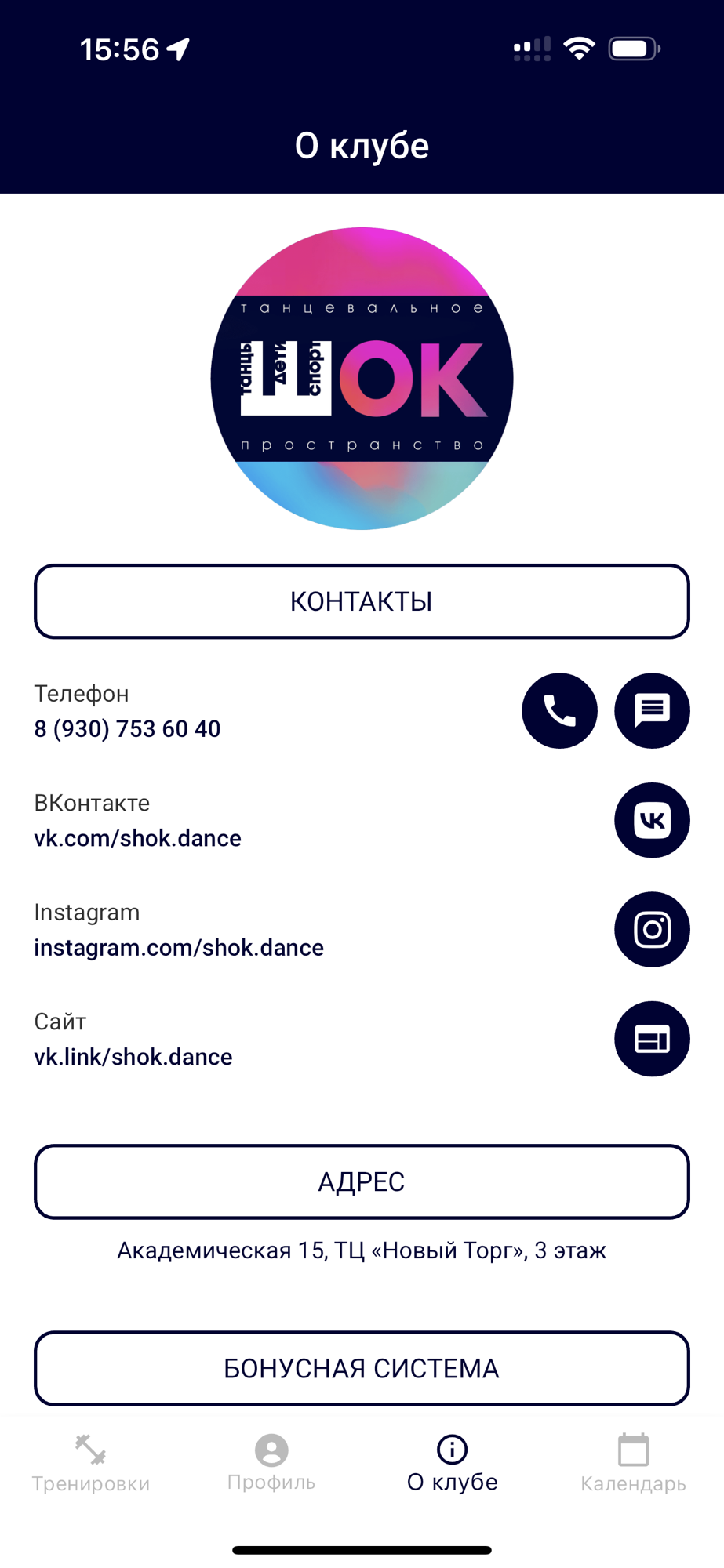 В нашем приложении вы найдете расписание занятий, информацию о клубе, удобный календарь.
