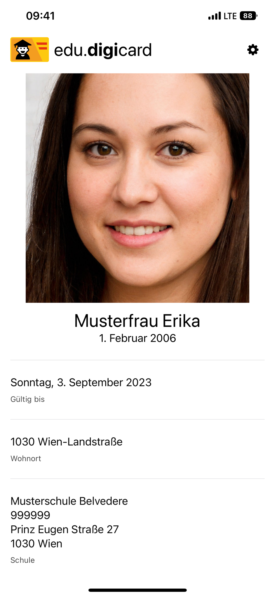 4. Jetzt wird die edu.digicard auf Ihrem Smartphone angezeigt. Die edu.digicard kann über den in der App angezeigten QR-Code auf ihre Gültigkeit überprüft werden.