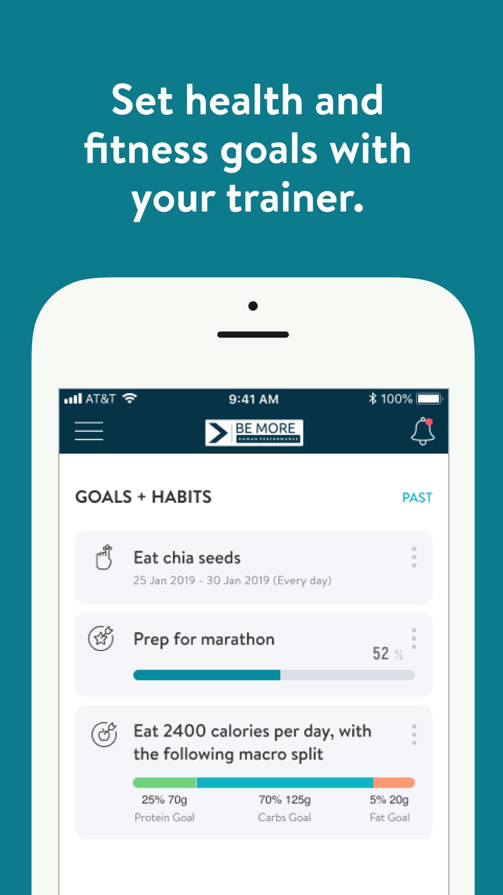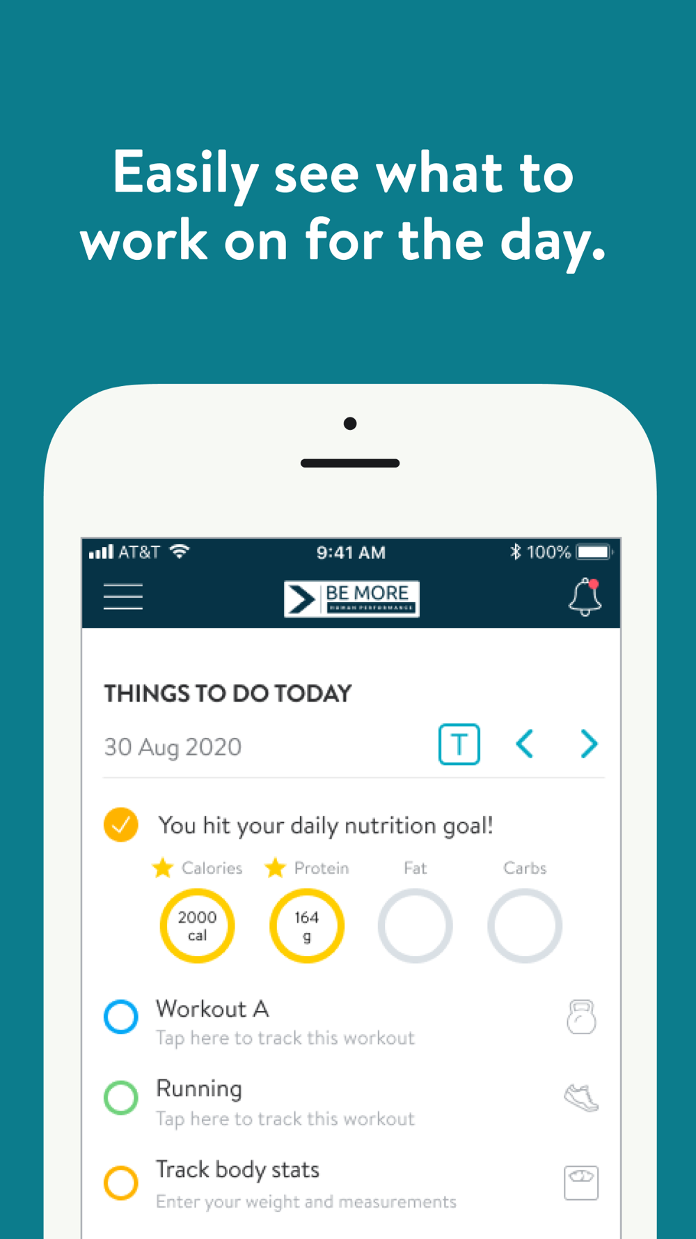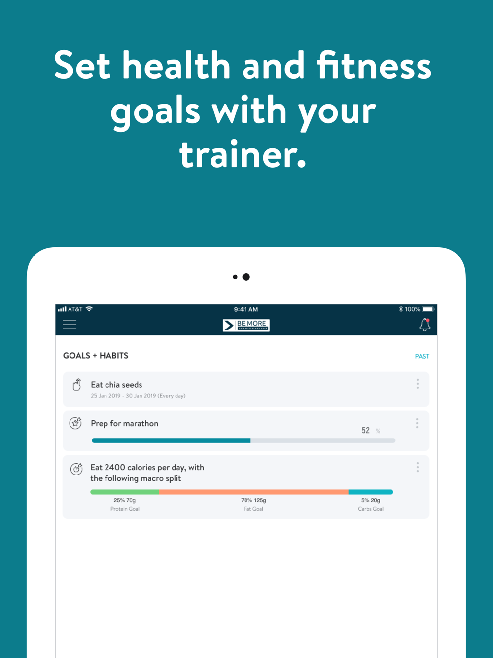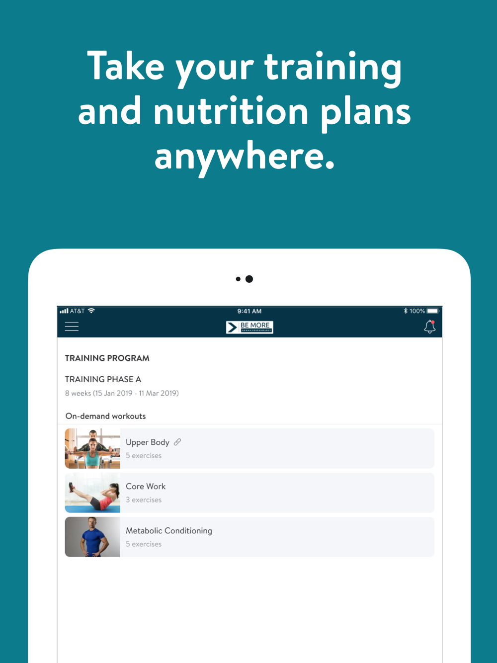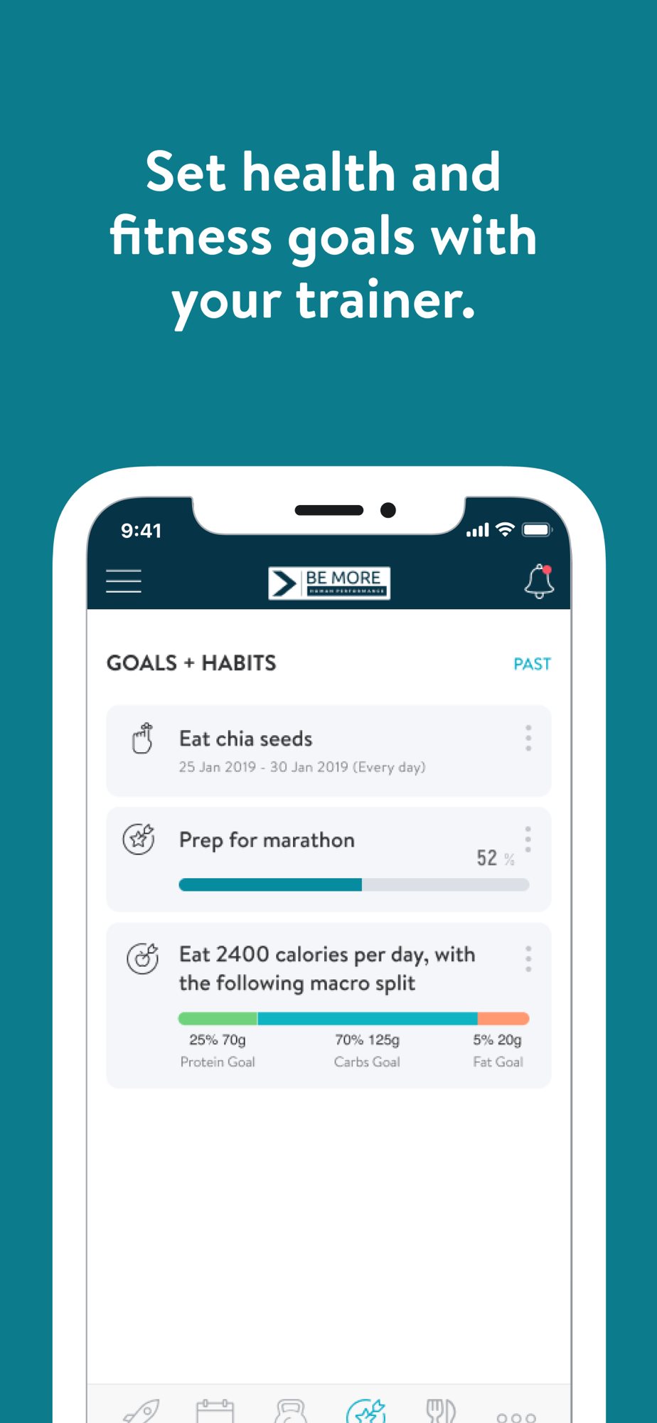 With the Be More HP App, you will have access to workout programs designed specifically to help you reach your fitness and health goals! You can follow & track your workouts, your nutrition, your lifestyle habits, measurements and results–all with the help of your coach.