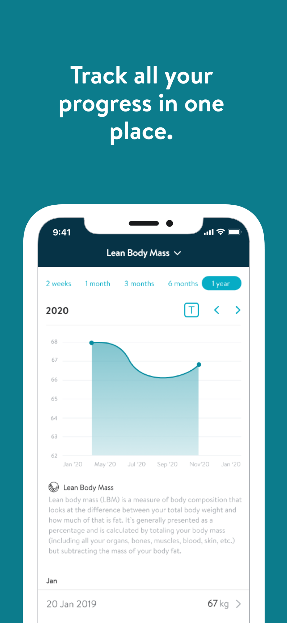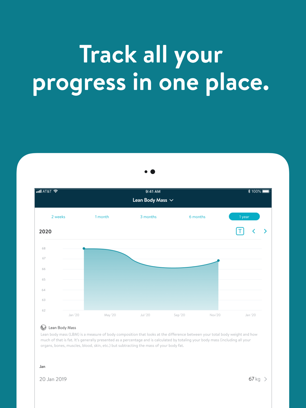 - Track body measurements and take progress photos