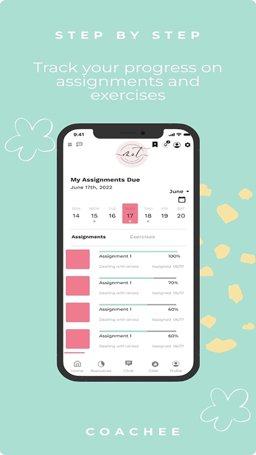 Your coach gives you assignments and exercises right on the app. Keep track of your progress as you complete them, and stay organized with the ones that are completed or not completed