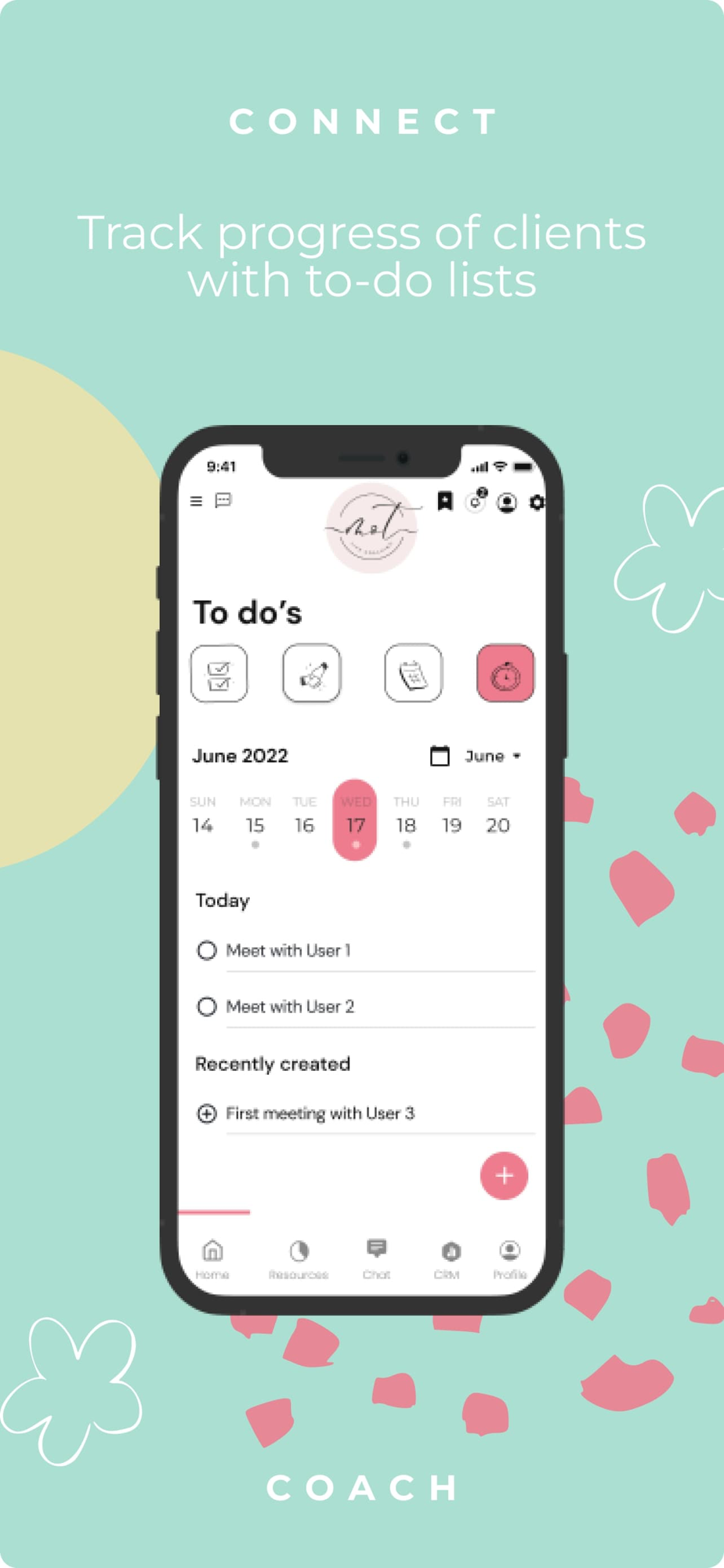 Interact with your coach in our one-on-one chat feature. Get questions answered or reach out about meetings, homework, or anything else you need! Call your coach for sessions right on the app!