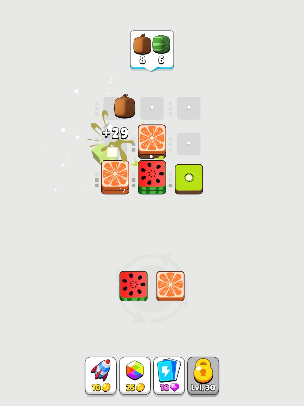 Unlock new fruits and use power-ups to help you clear the level faster.