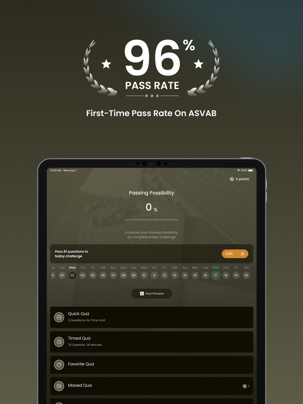 Getting a low score on the ASVAB might mean missing a chance at the military job you really want–or possibly not getting in the military at all. If the thought of taking the ASVAB has you stressed out, don’t worry- we’re here to help! Our free practice test for the ASVAB will help you identify areas or concepts you may struggle with understanding, so you can maximize the time you have to study and get the score you want the first time.