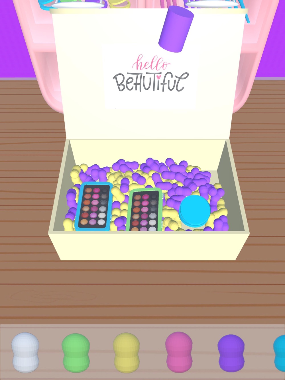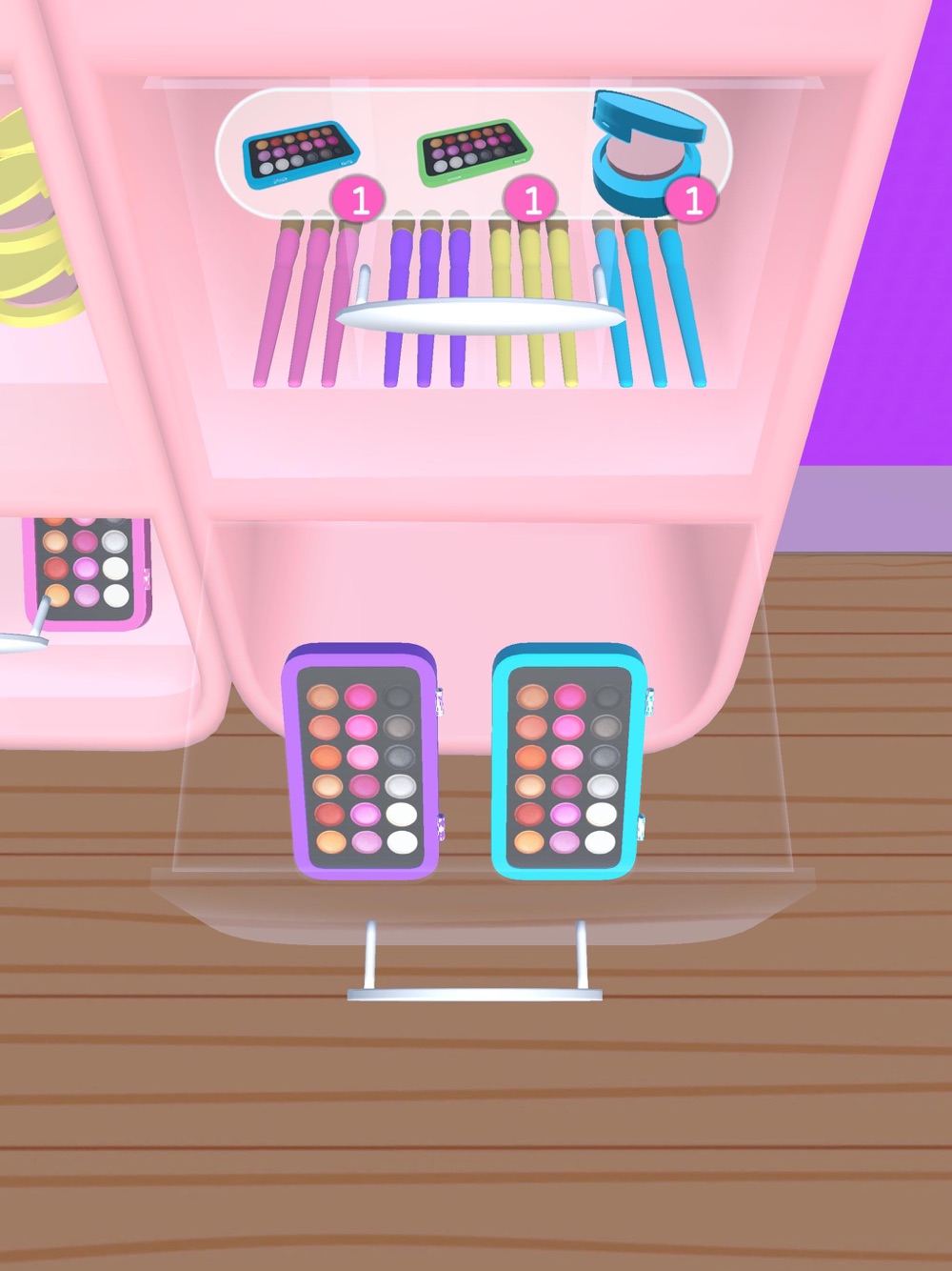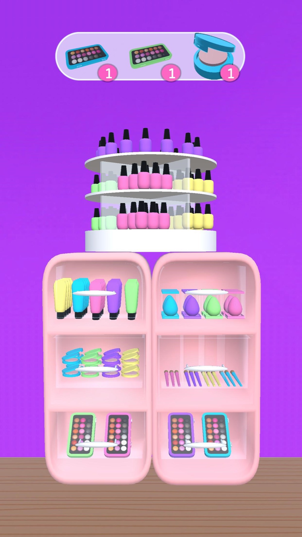 Player has to pack ordered items from color organized stacks of makeup and different types of beauty products.