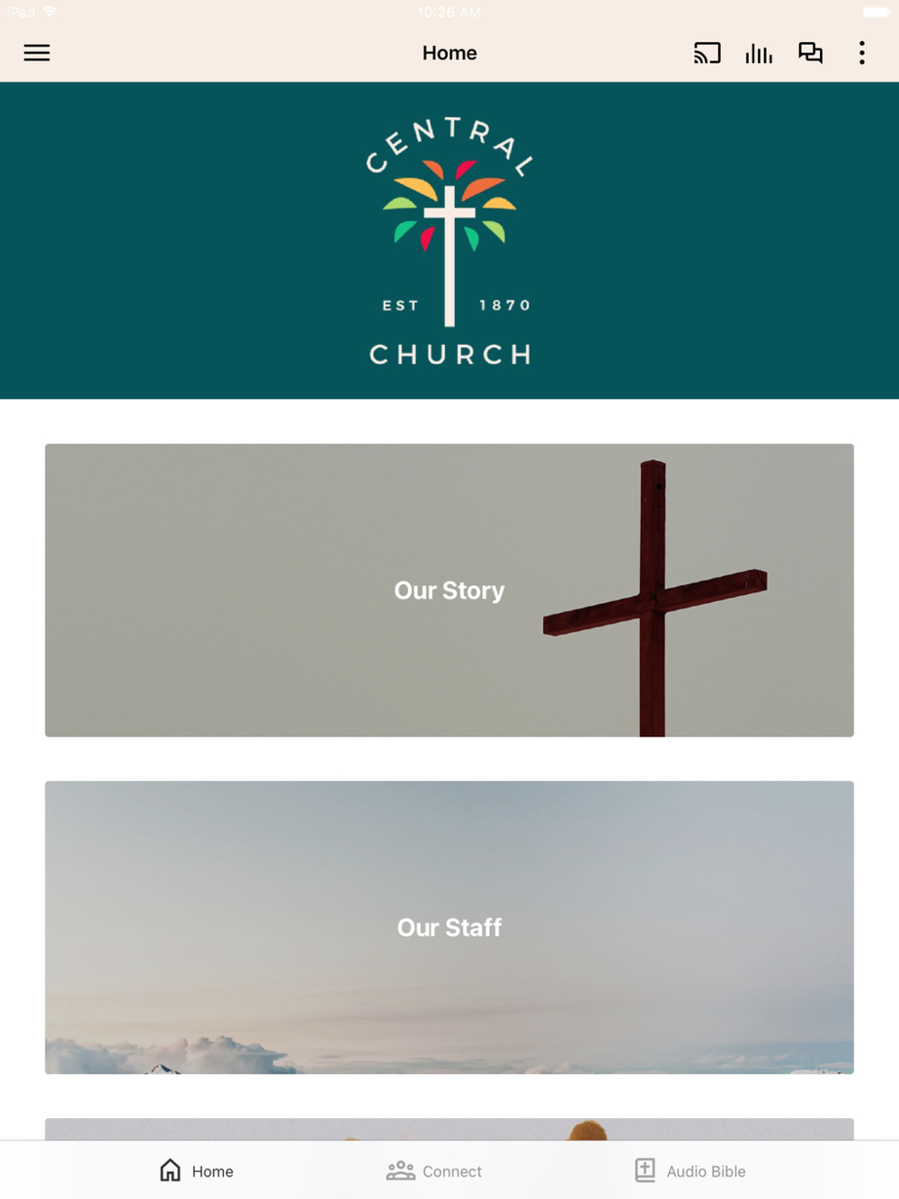 This app will help you stay connected with the day-to-day life of our church. With this app you can: watch or listen to past messages; stay up to date with push notifications; share your favorite messages via Twitter, Facebook, or email; and download messages for offline listening.