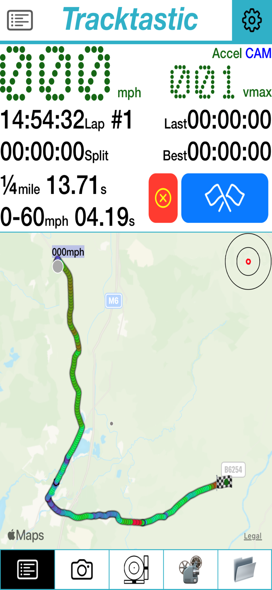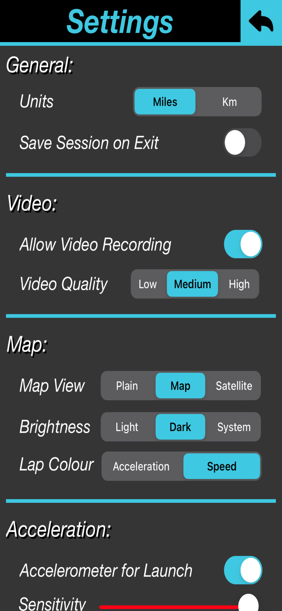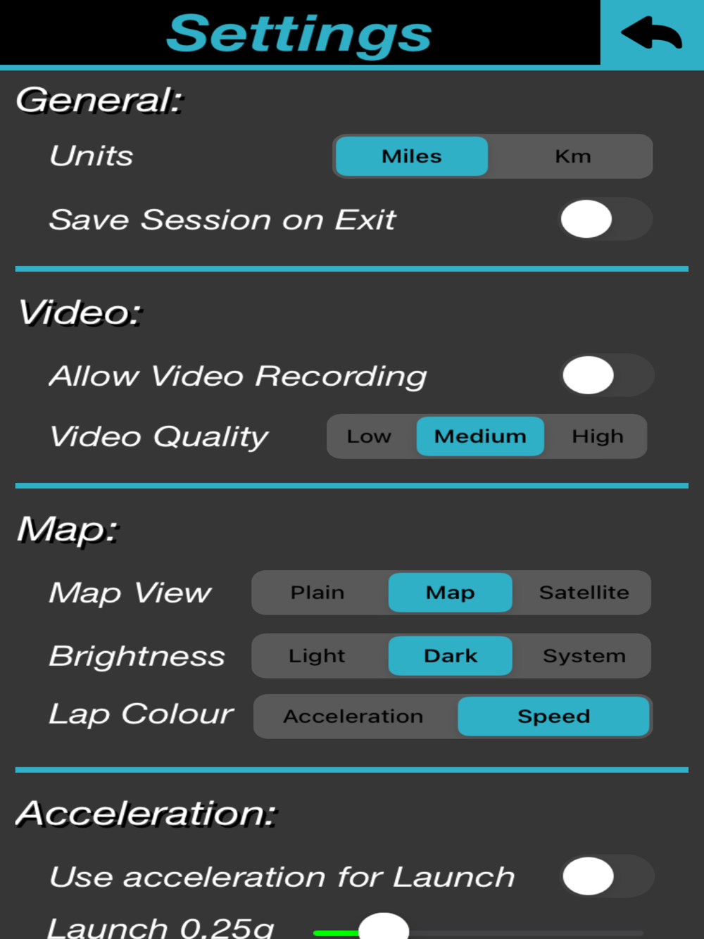 Optional videos can be recorded simultaneously with the lap data and replayed or copied to the device photos library.