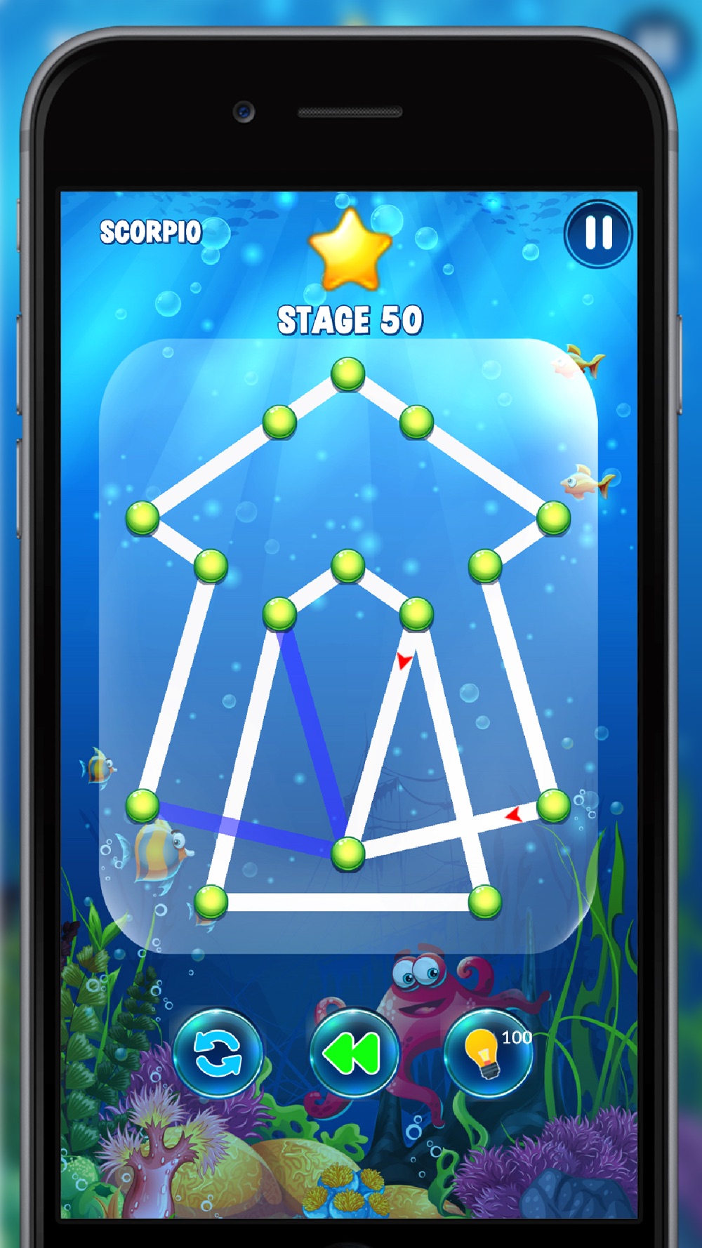 One Line Drawing Water Puzzle is a puzzle based brain training drawing game.A one liner full of fun in underwater theme . A best brain training game in which you draw 1 line to make shape. One Line Drawing Water Puzzle is simple way to train your brain and improve your IQ everyday with free puzzles. In this tricky mind game you will find a lot of good brain puzzle packs and a daily challenge.