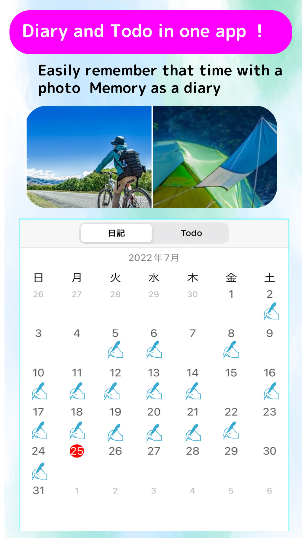 You can delete diaries, Todos, and photos that are no longer needed by swiping left.