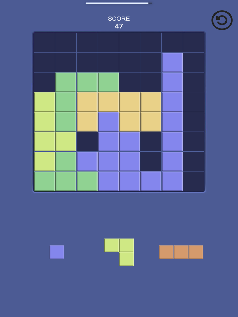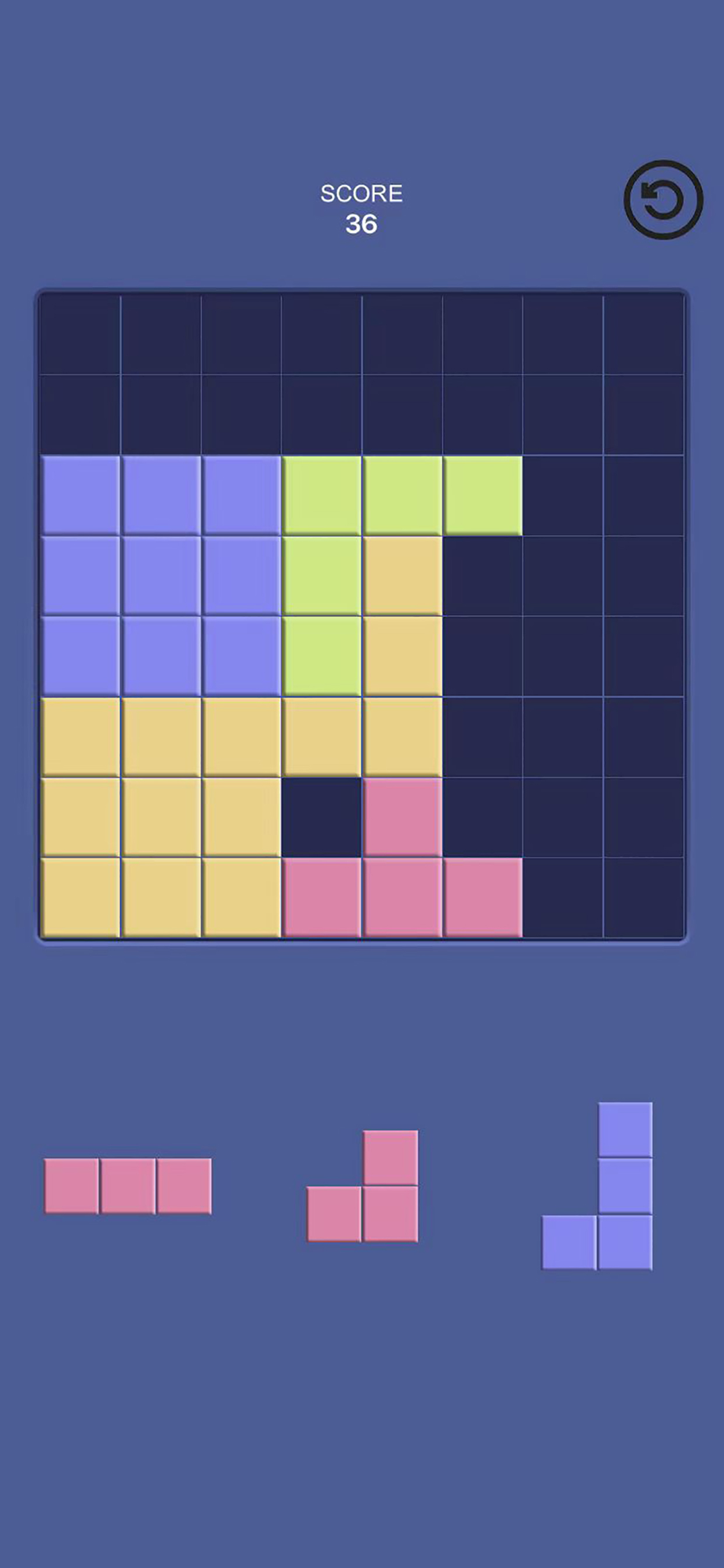 -每一步的放置都将获得分数,棋盘没有放块的空间时游戏结束。
