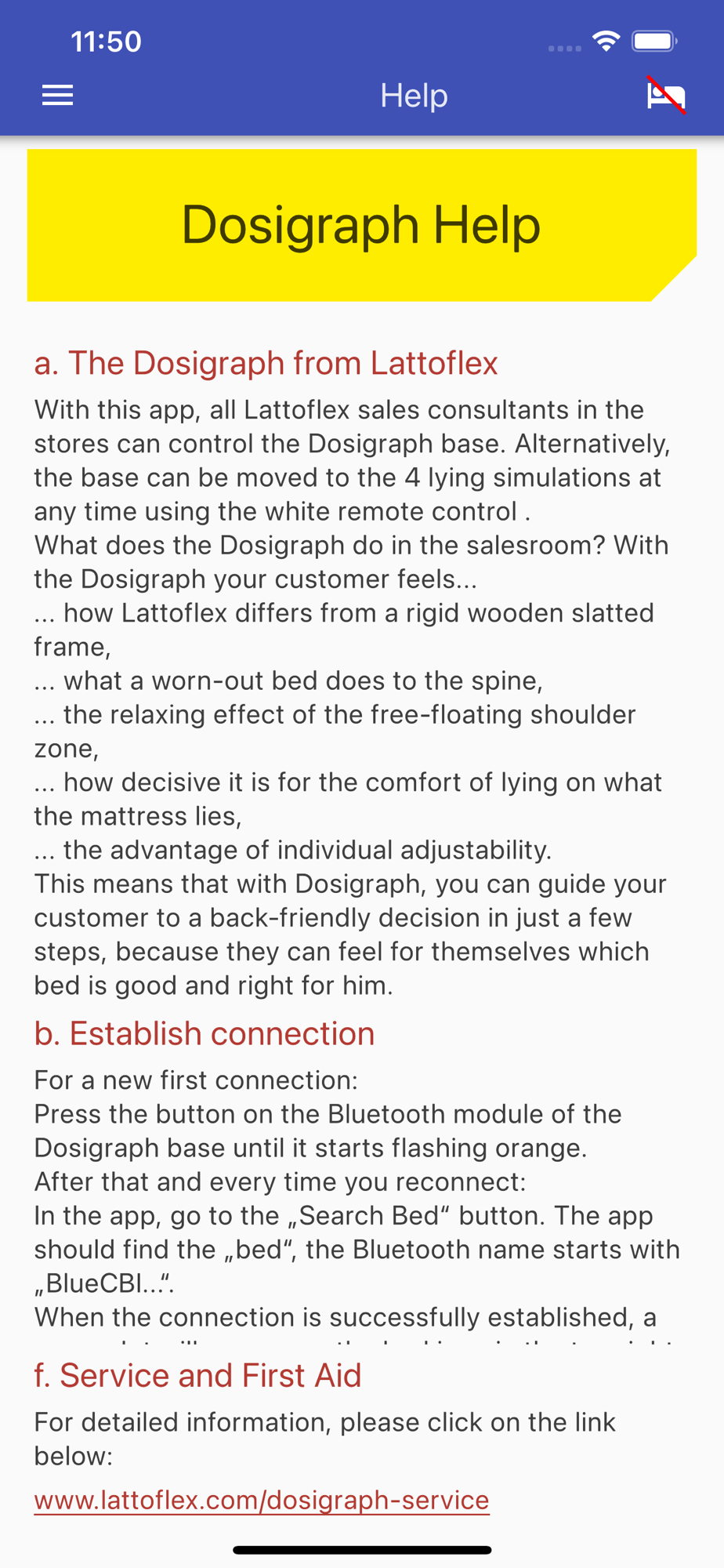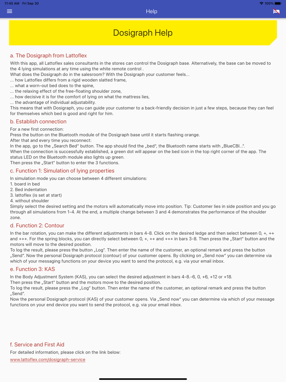 With this app, all Lattoflex sales consultants in the stores can control the Dosigraph back analysis spring base. There is no useful application for using this app at home.