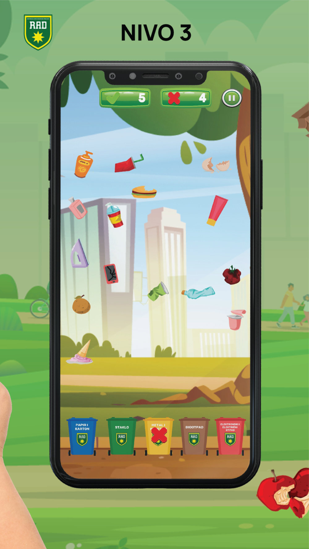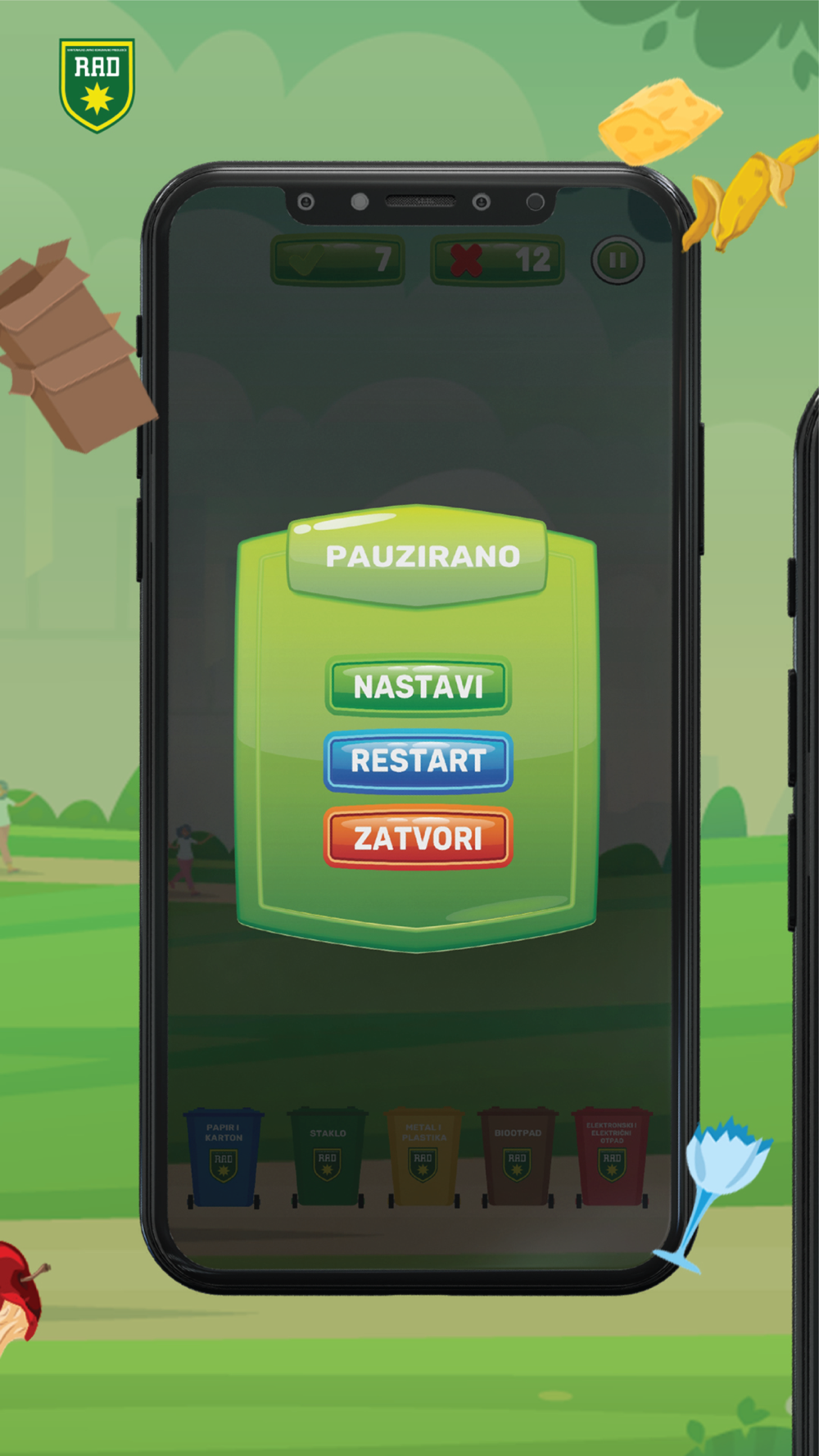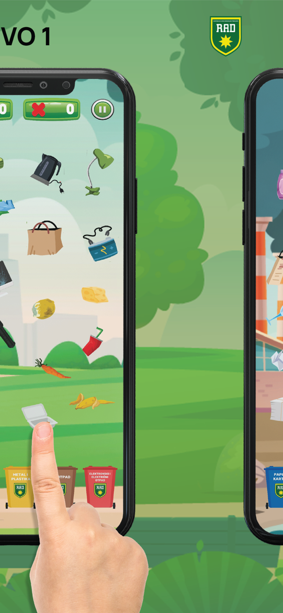 Razvrstaj uz RAD za čist grad je Igrica edukativno zabavnog karaktera namjenjena djeci i omladini koja će kroz tri nivoa igranja naučiti kako da pravilno razvrstaju i izvrše selekciju optada u odgovarajuće kante.