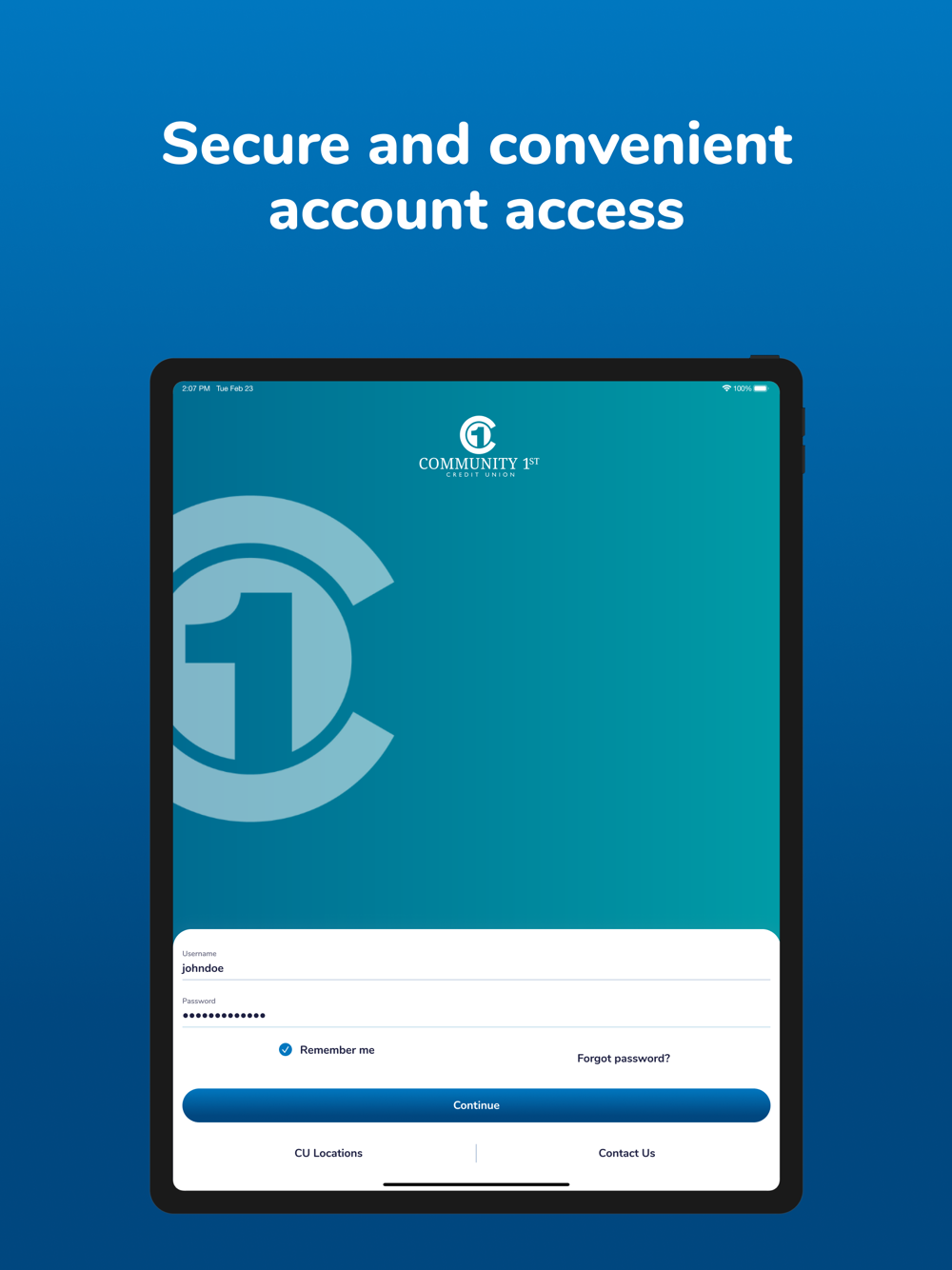 To login to your mobile app, use your MYC1CU username and password. If you’re having issues logging in, please see our FAQs at https://myc1cu.com/online_banking_faqs