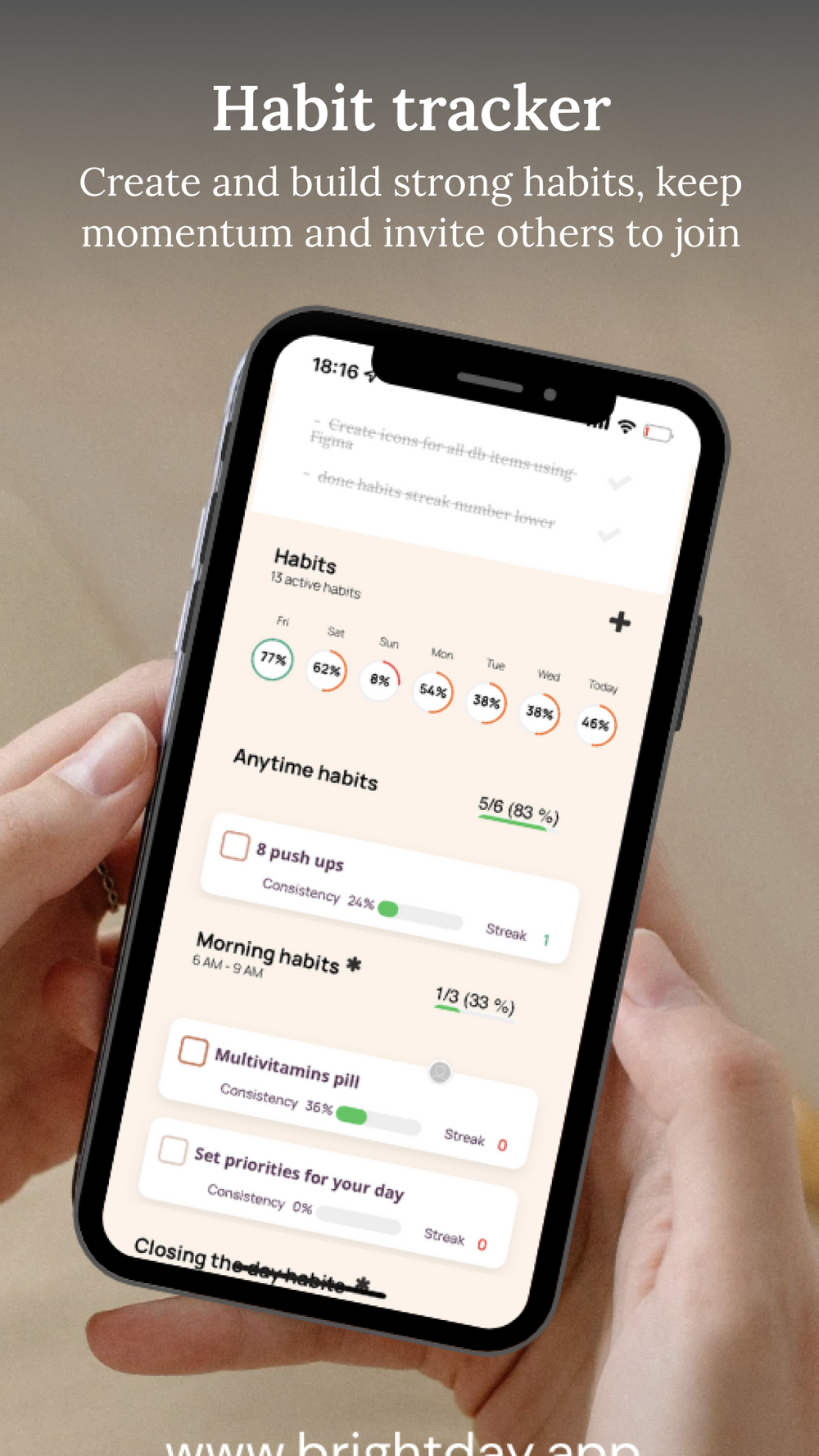 Meet BrightDay - a life-changing app that will support you in becoming the best version of yourself.