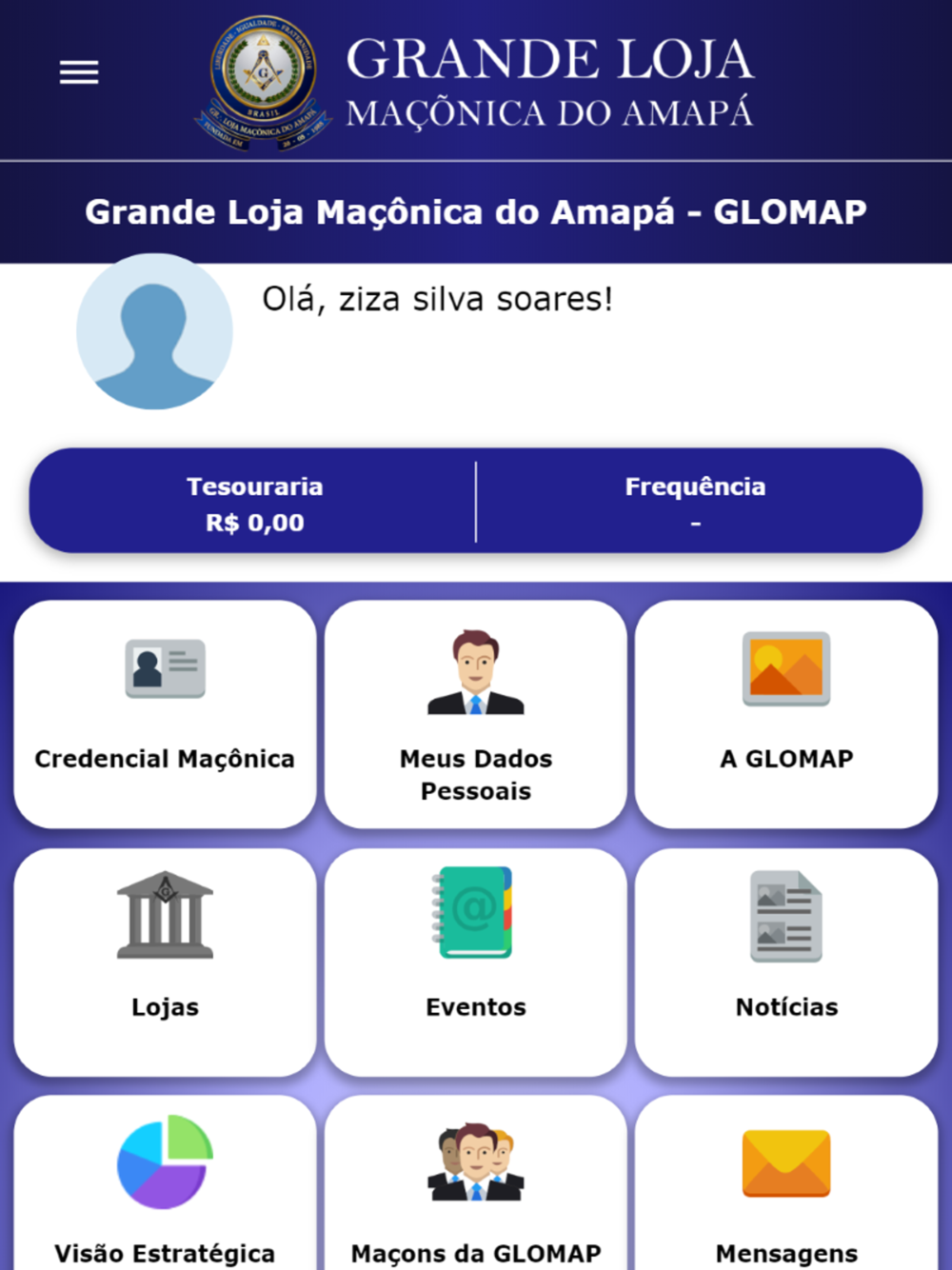 - Através do botão "Credencial Maçônica" o usuário terá acesso a carteira de membro.