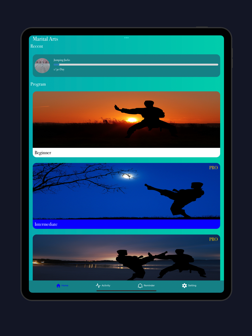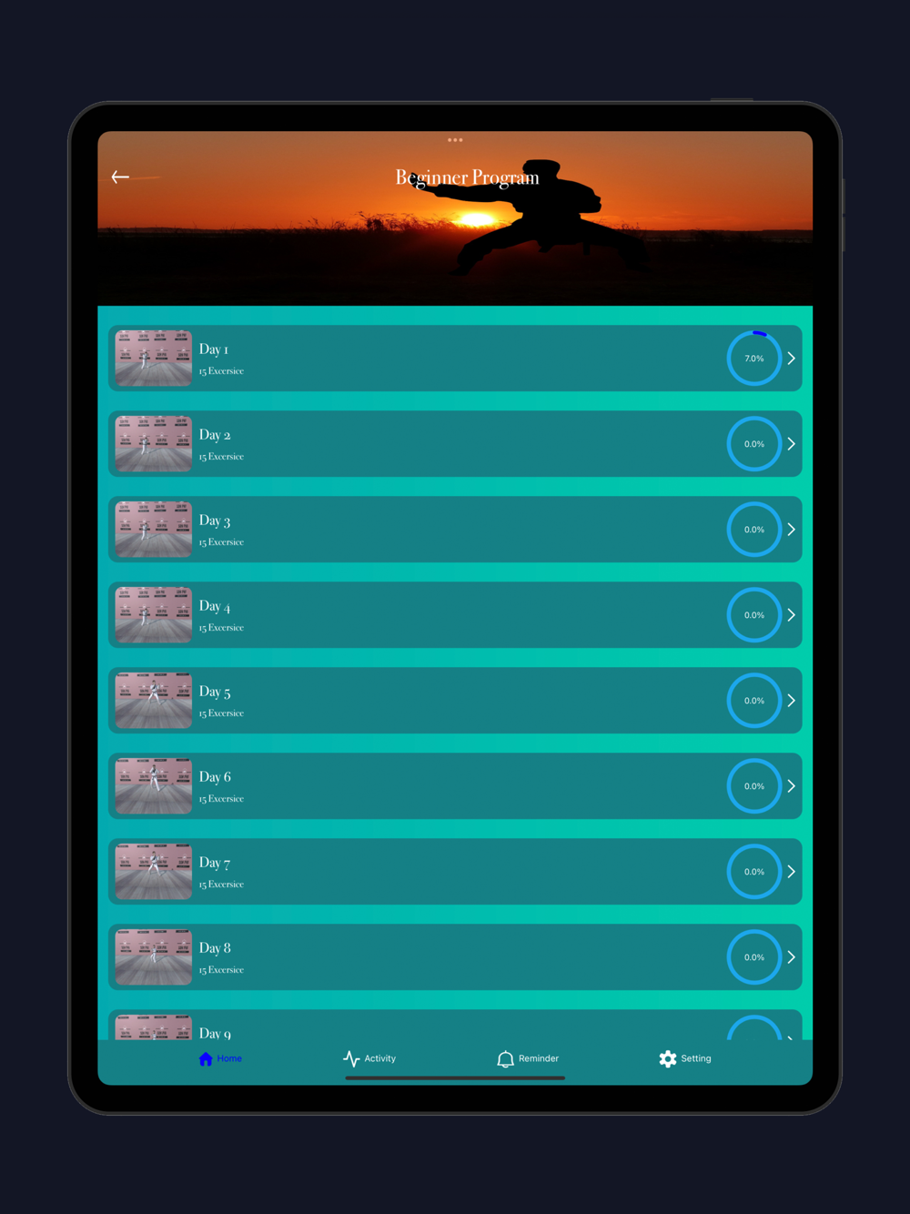 It synthesizes the best exercises of martial arts(Taekwondo,Karate, Boxing and Muay Thai) from basic to advanced.