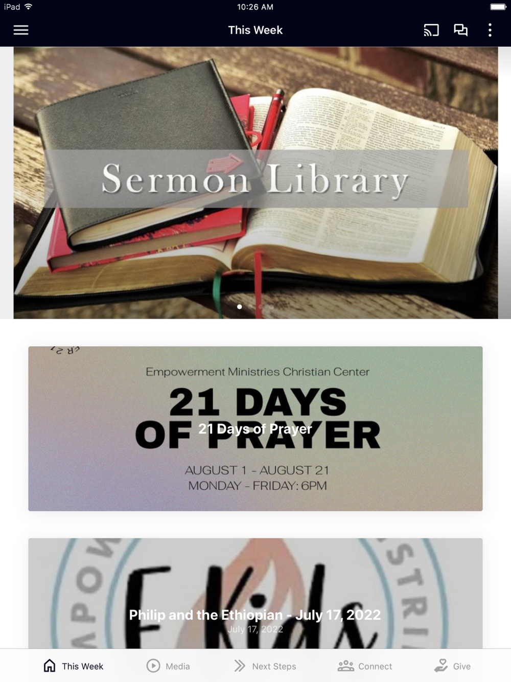 This app will help you stay connected with the day-to-day life of our church. With this app you can: watch or listen to past messages; stay up to date with push notifications; share your favorite messages via Twitter, Facebook, or email; and download messages for offline listening.