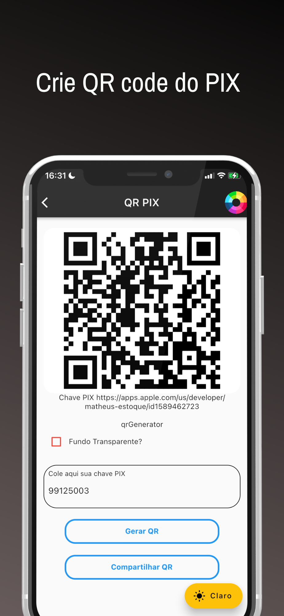- Criador / Gerador de QR code para chave PIx, é fato que hoje a maioria dos comércios aceitam PIX, com qrGenerator você pode salvar sua chave PIX em um QR Code e compartilhar com aplicativos desenvolvedores de artes canva para criar uma linda placa de pagamentos para facilitar sua venda.