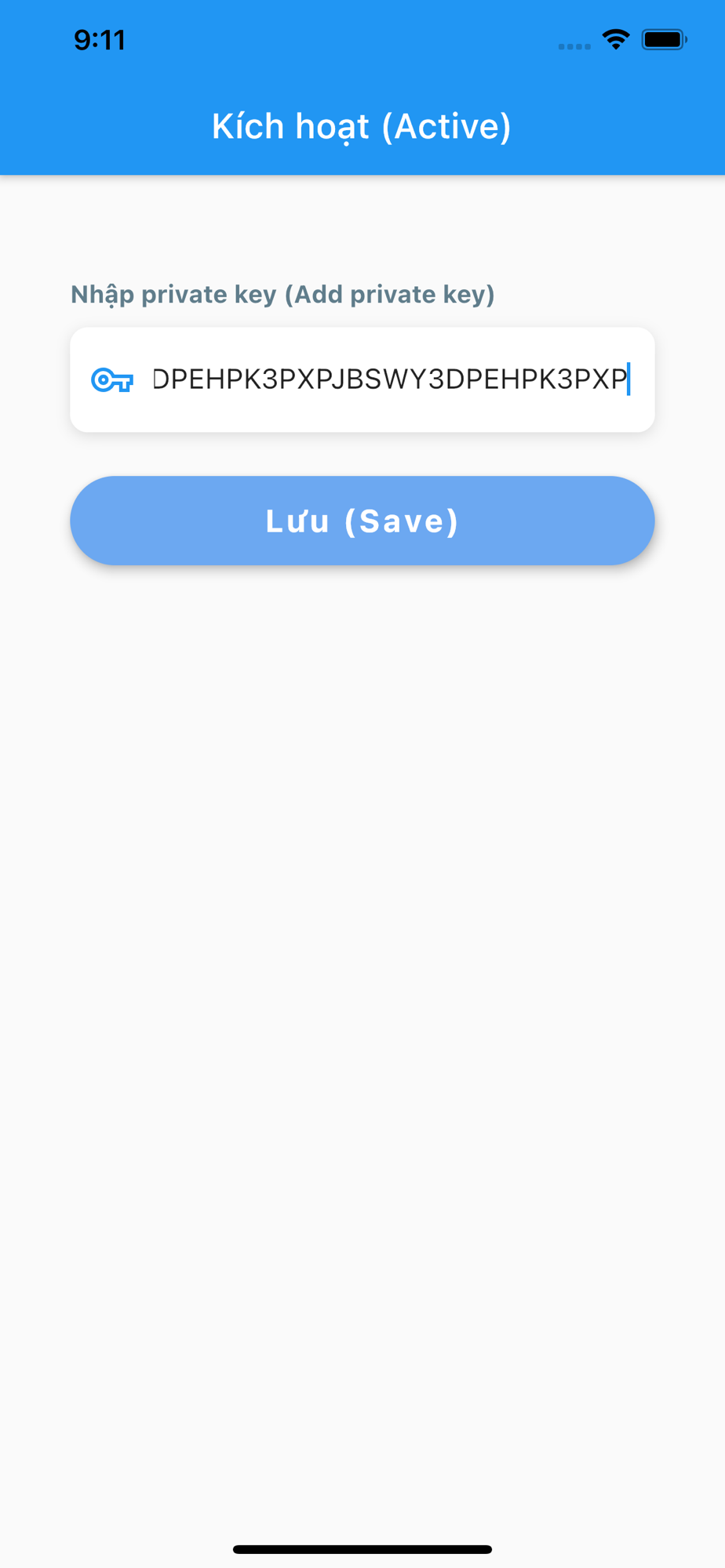 Example private key: JBSWY3DPEHPK3PXPJBSWY3DPEHPK3PXP
