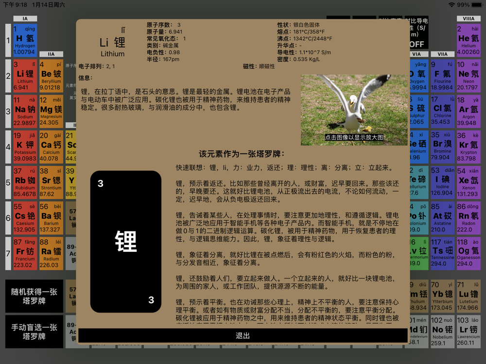 -除了可以被用作塔罗牌以外,还能被当作化学元素周期表来使用,用来查询各种元素的信息。