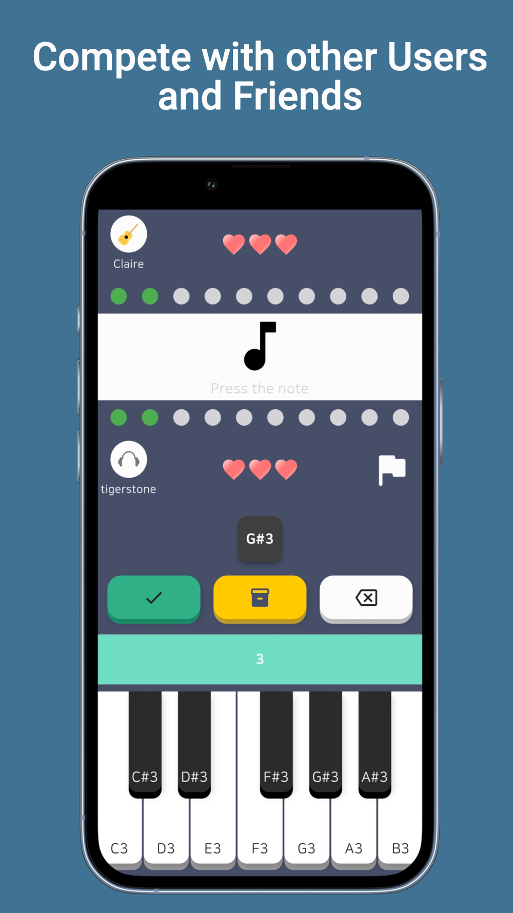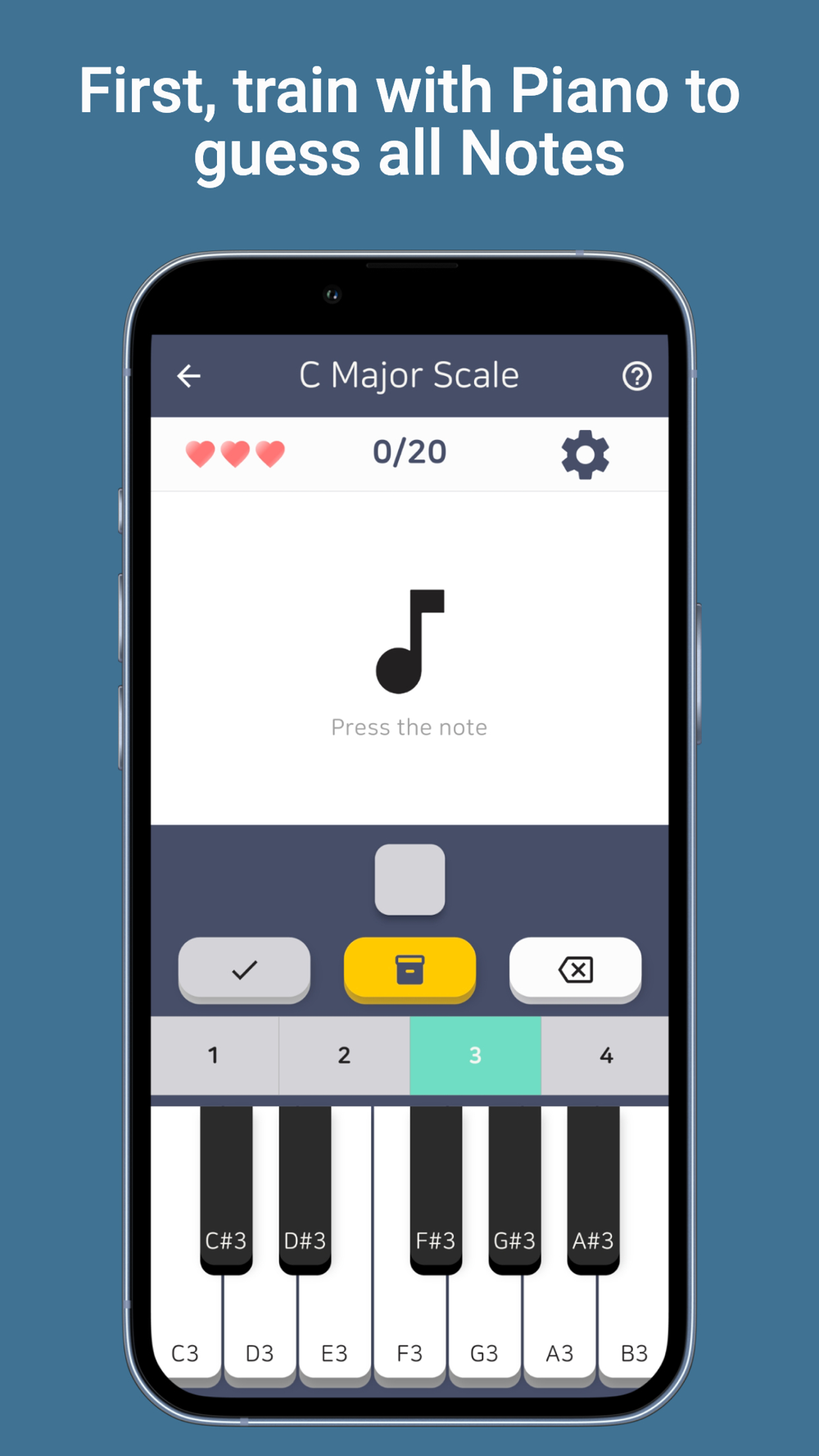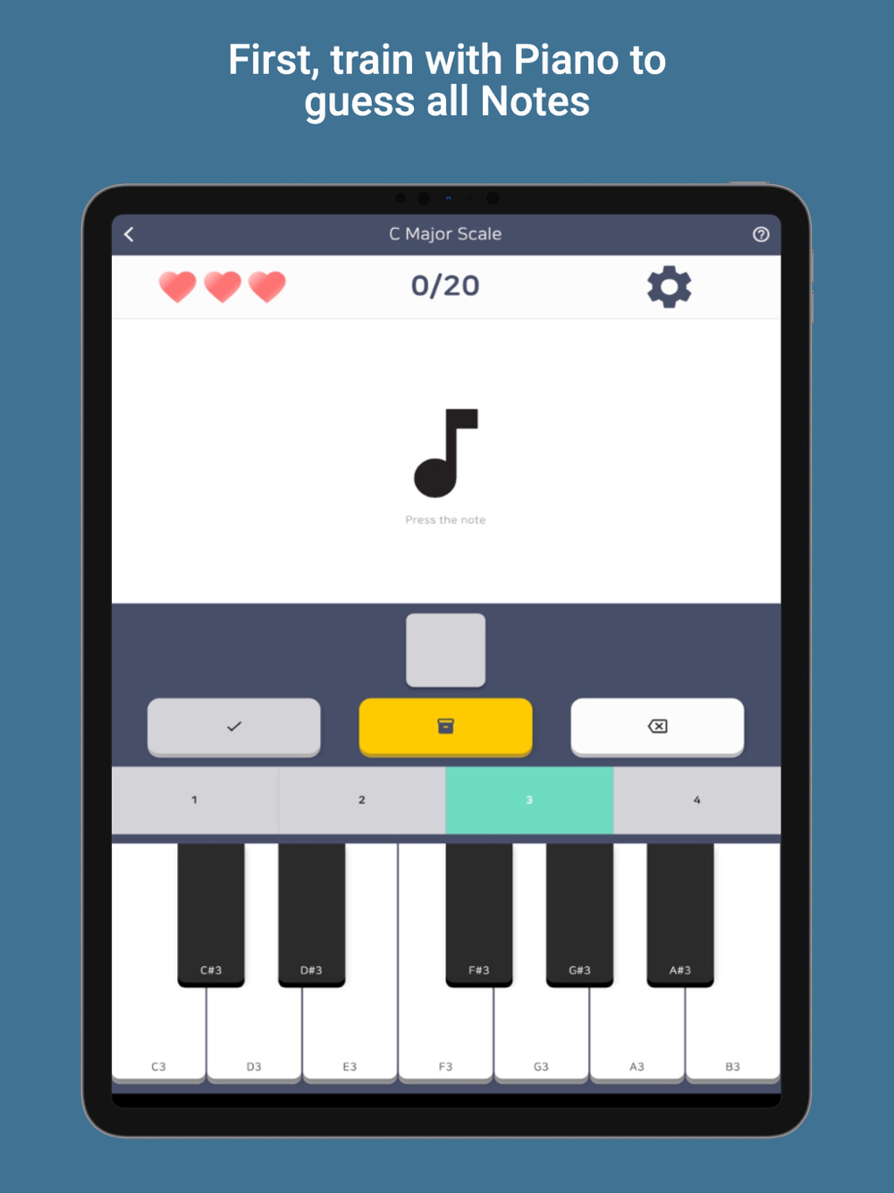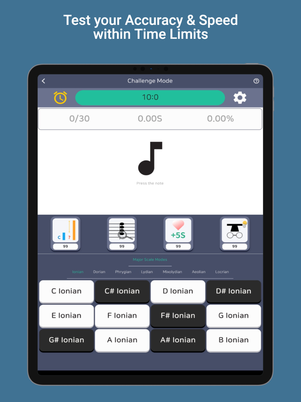 In Training Mode, gradually improve your listening skills by clearing stages from Notes to Tension Chords, 251 Voicings, and Mode Scales.