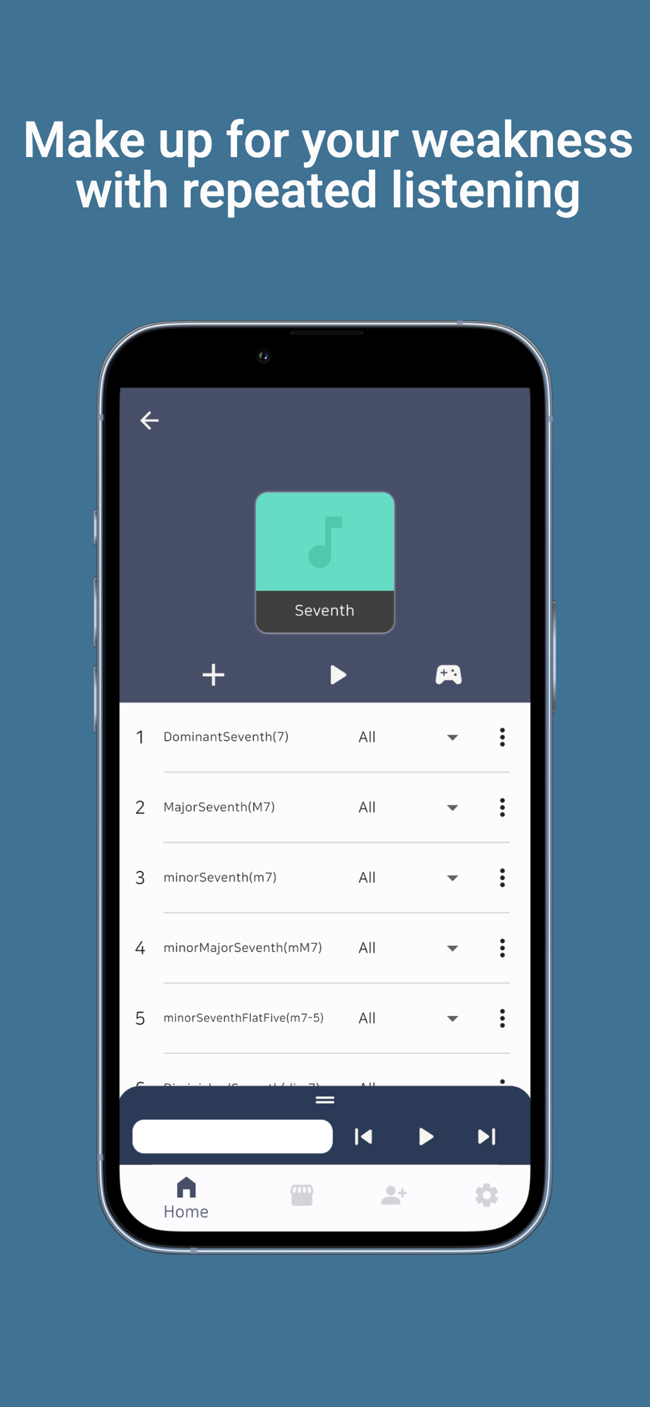 In Expert Mode, add the Chords or Scales to your playlists and dramatically improve your listening skills by repeating the playlists.