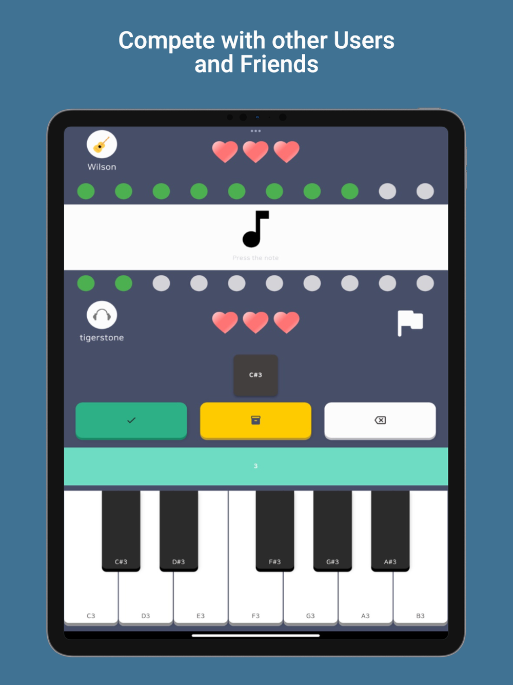 Gradually improve Absolute Pitch by practicing your listening skills from Notes to Tension Chords, 251 Voicings, and Mode Scales. You can also create the Chords and Scales you want to practice yourself. Get the Absolute Pitch easier and more fun with games.