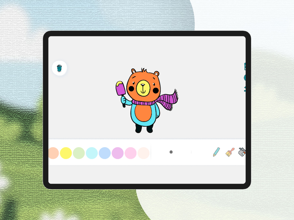 In our drawing mode, you can draw a childish character step by step: a cat ,a dolphin ,an elephant ,a unicorn and ...