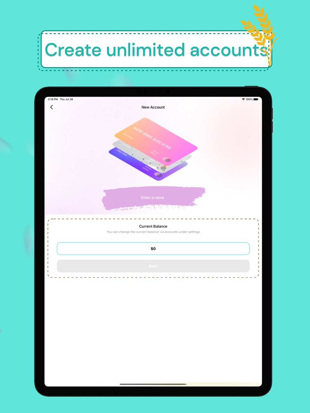 Add many accounts as you want and rename them in your own way. You can customize everything to better understand your spending.