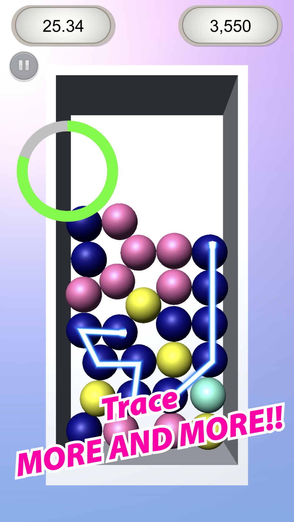 ②Trace a lot of balls to get a high score and make a special ball