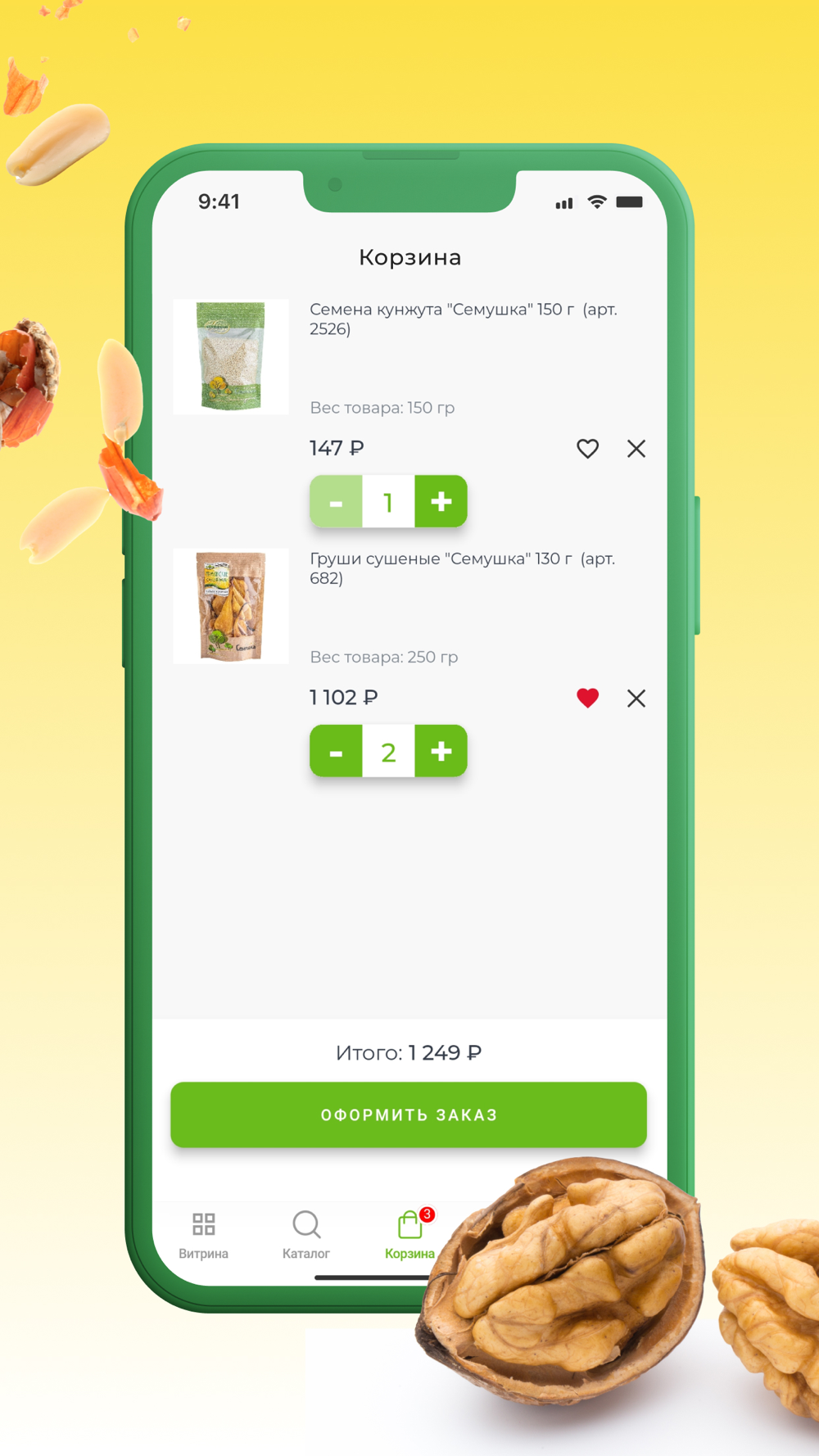 Сегодня, чтобы купить качественные орехи и сухофрукты, приходится приложить немало усилий. По-настоящему первоклассный и полезный продукт не так просто найти, и порой приходится столкнуться с тем, что выбор сделать нелегко. Интернет-магазин компании «Семушка» — это поставщик отличных орехов и сухофруктов в вашем смартфоне. 20-летний опыт поставок и переработки продукции позволяет нам предоставлять нашим покупателям товары из отборного сырья в соответствии с высокими международными стандартами качества. Собственная производственная база, уникальные технологии логистики и переработки позволяют удовлетворить даже самый изысканный вкус. Более 300 видов орехов, сухофруктов, цукатов, семечек, сушеных овощей и ягод – это далеко не весь ассортимент, который мы предлагаем вам сегодня. Сделайте заказ и вы сами убедитесь в том, что «Семушка» — это не только полезно, но и очень вкусно!