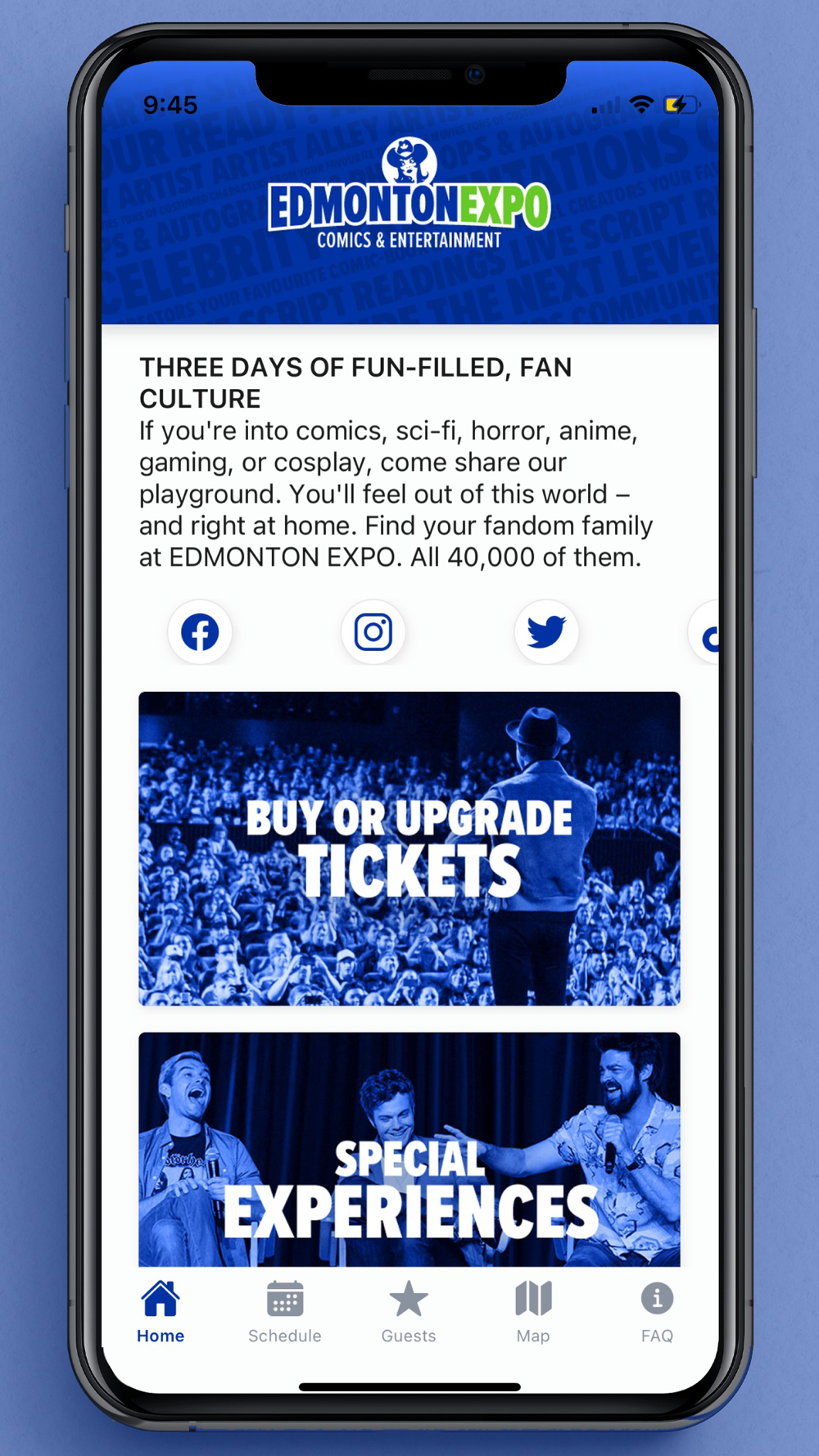 This is the official app for EDMONTON EXPO. If you're into comics, sci-fi, horror, anime, gaming, or cosplay, come share our playground. You'll feel out of this world – and right at home. Find your fandom family at EDMONTON EXPO. All 40,000 of them. Download for the latest schedule, show map, and guest updates to help plan your weekend.
