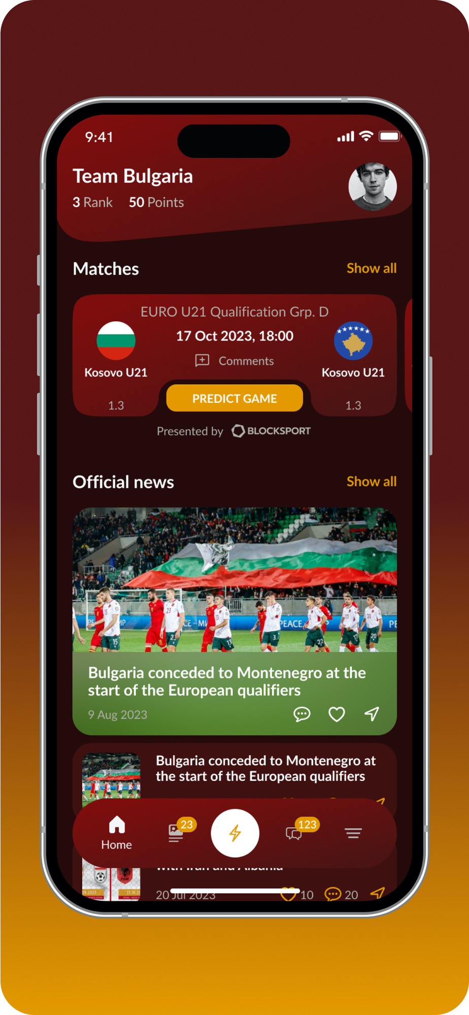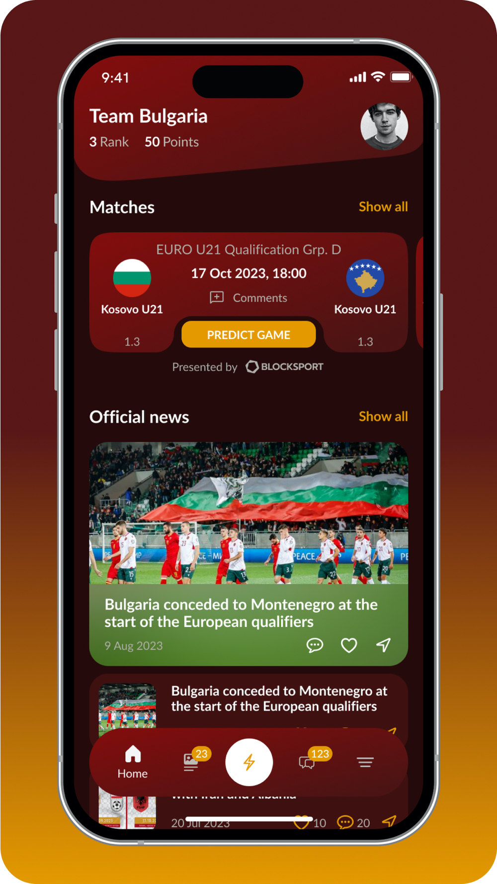 С тази чисто нова апликация получаваш всичко директно на телефона си! Вече никога няма да пропуснеш последните новини за Team Bulgaria, резултати на живо, ексклузивно съдържание, търговски оферти, чат с други фенове и още много от любимия си отбор!