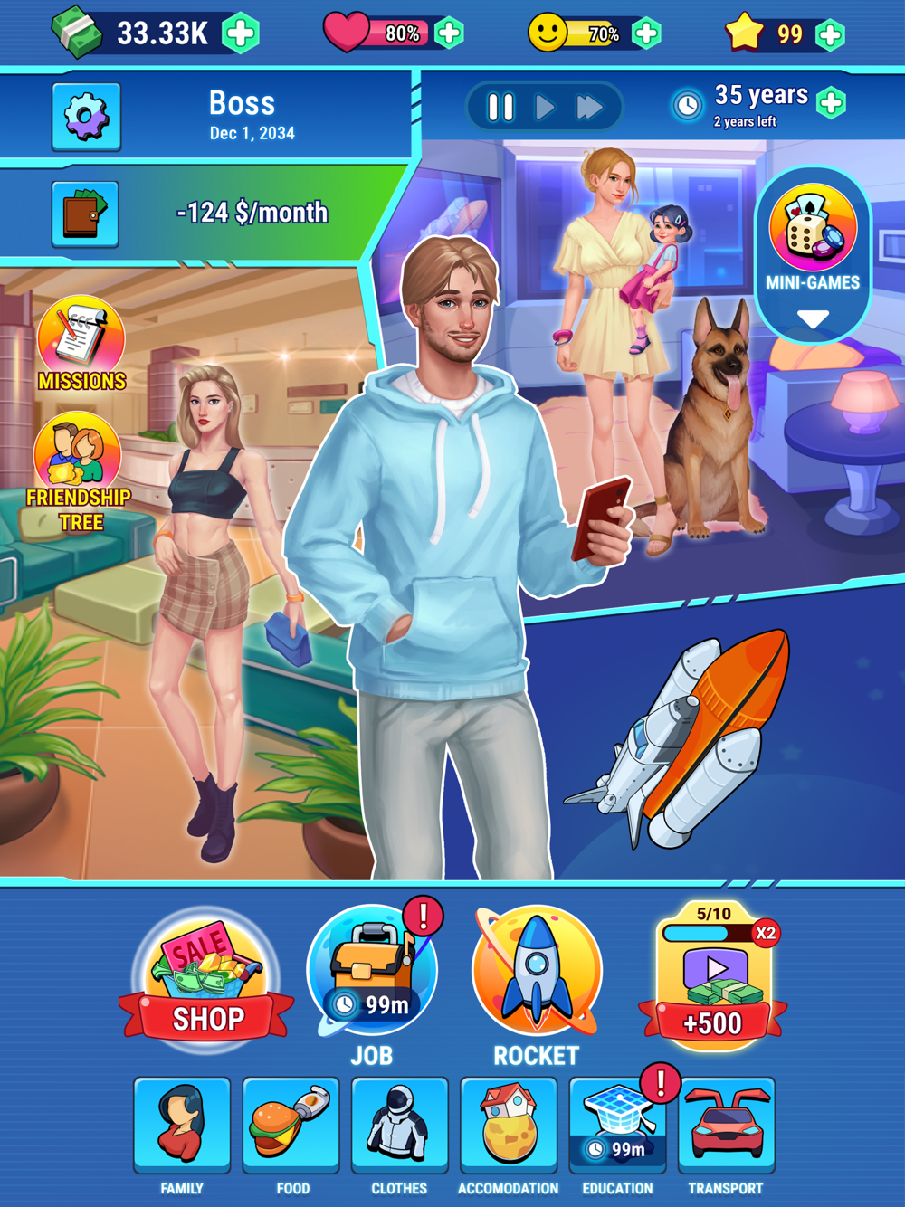 And if you choose entertainment, well—your decision. Let every million spent be a joy to you. Collect cars, meet the hottest girls and dive into the most pleasant moments of life with billions in your account. Forget about traffic jams with your personal yacht and business jet. Live in a luxurious mansion outside the city, in a villa on a private island, or in the most luxurious apartment in the center of the metropolis.