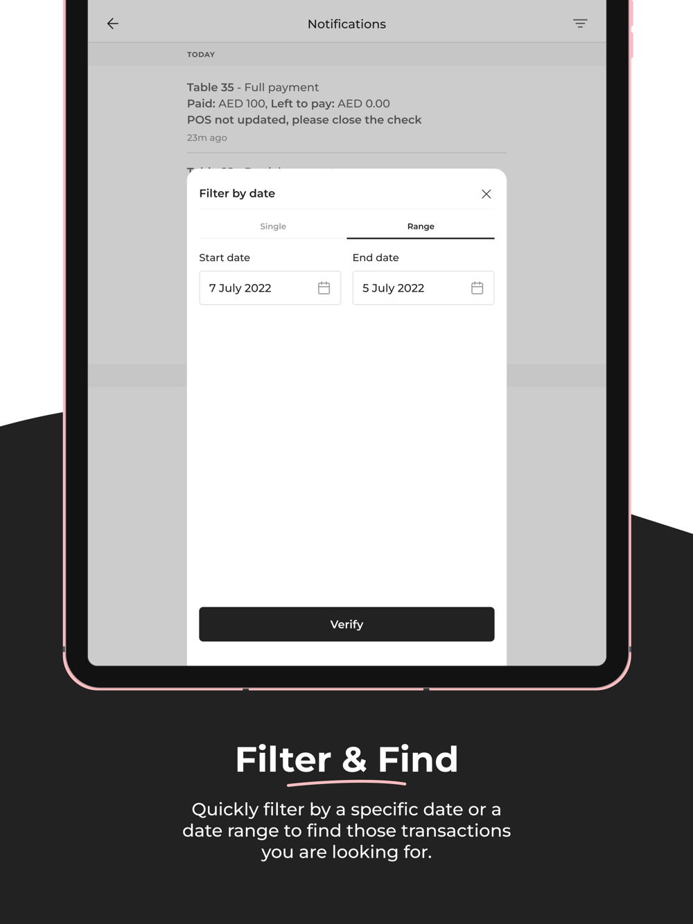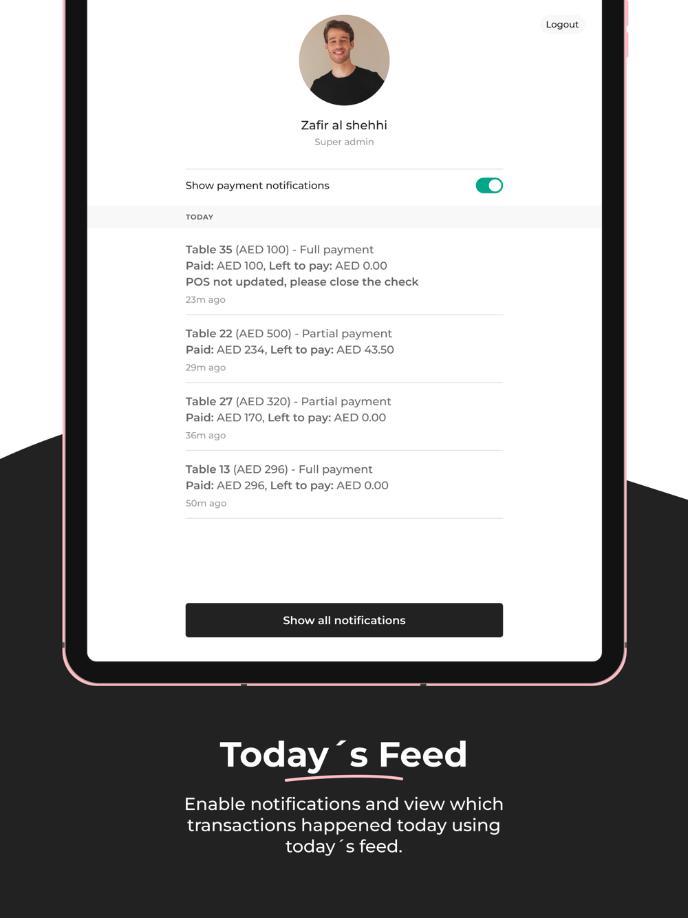 Enable push notifications of transactions to see what´s happening at your tables instantly.