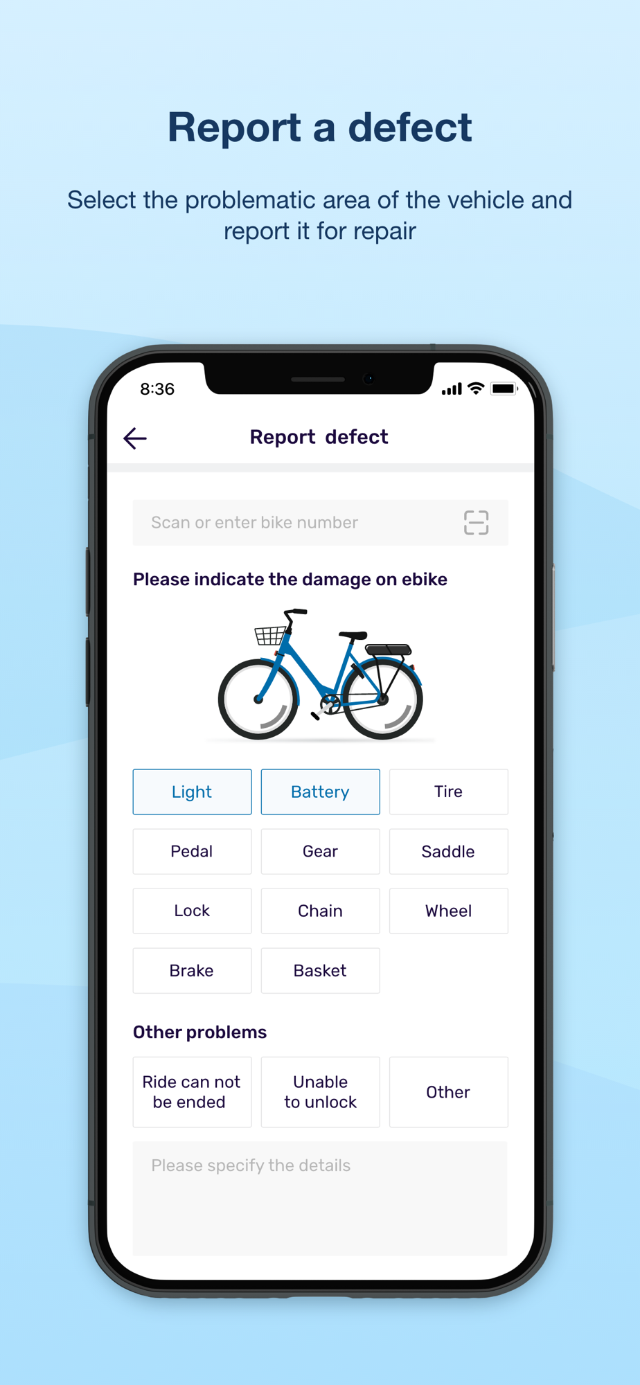 Shows an overview of the tasks that need to completed, helps you locate faulty bikes, see the defects that need to be repaired