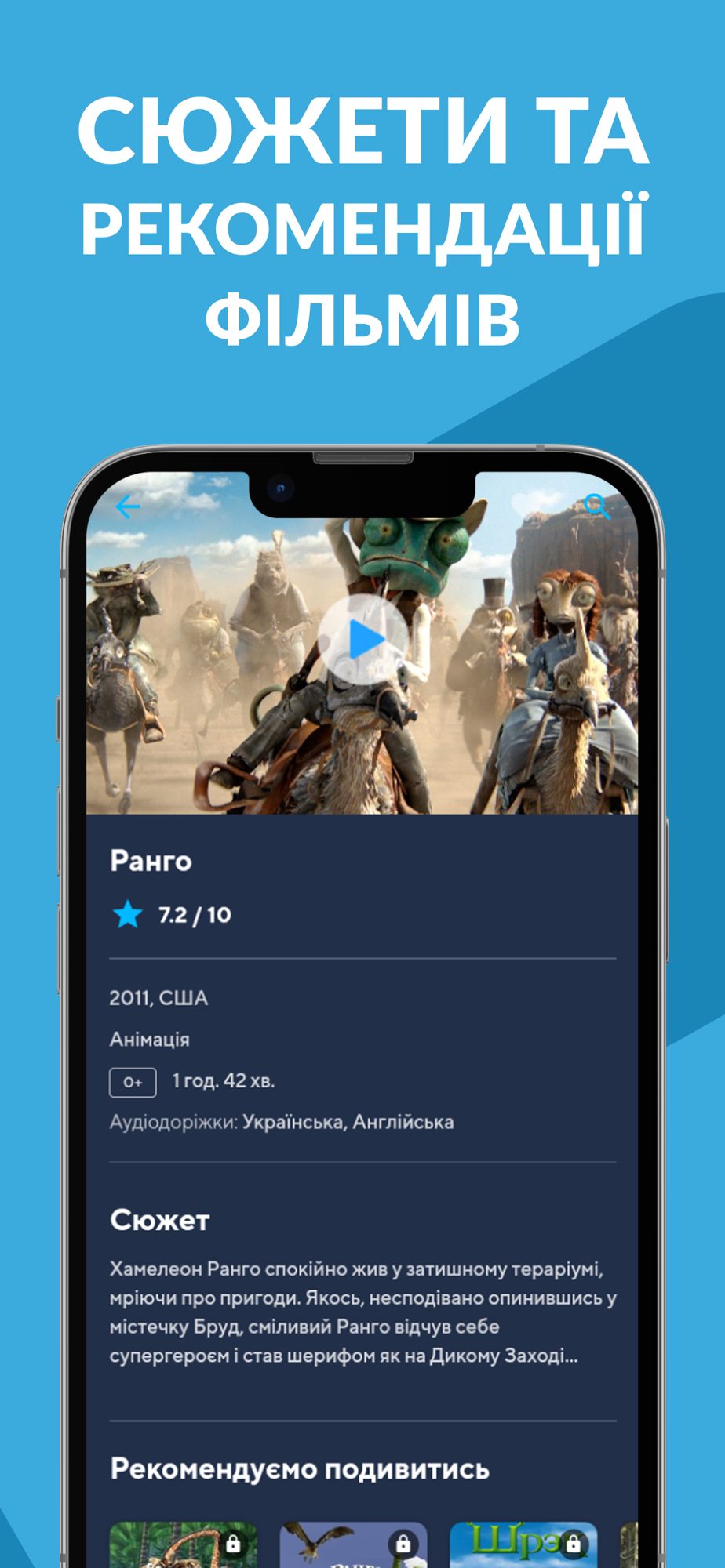 20000+ фільмів, серіалів, шоу, популярних у всьому світі. Вмикайте кіно в один клік та насолоджуйтеся переглядом без реклами.