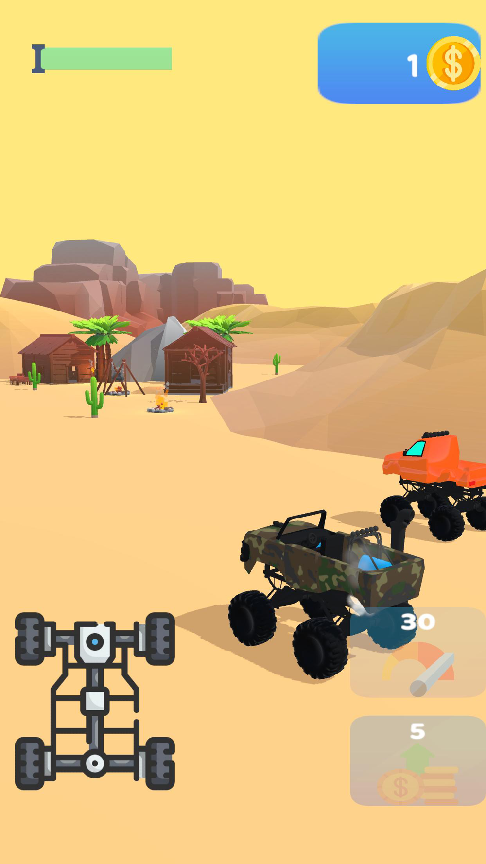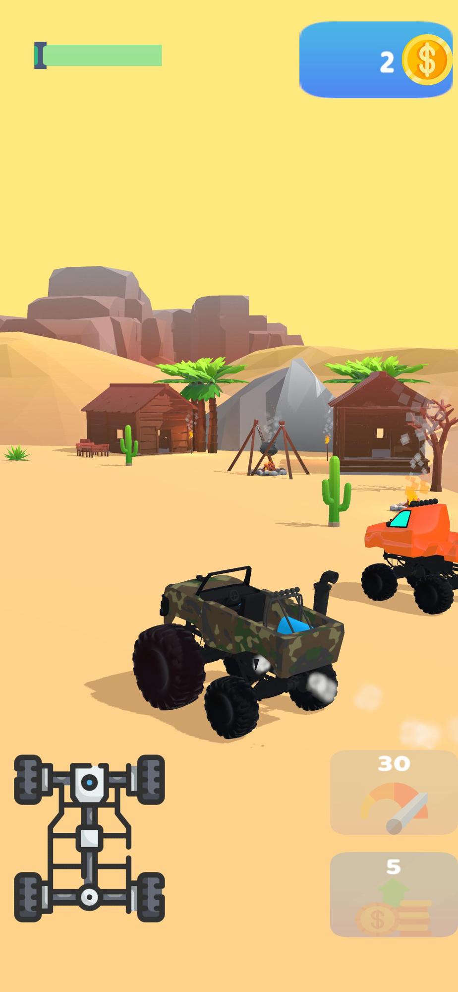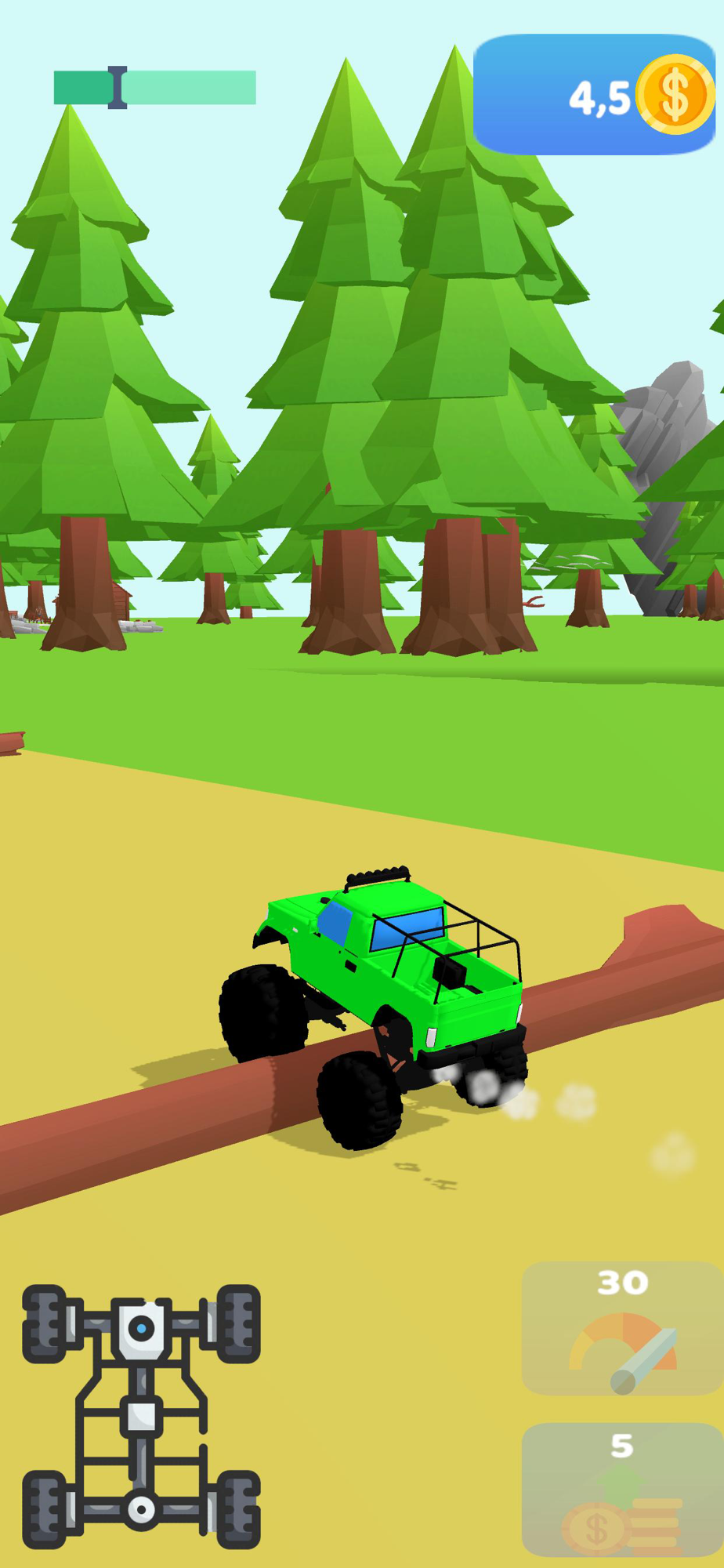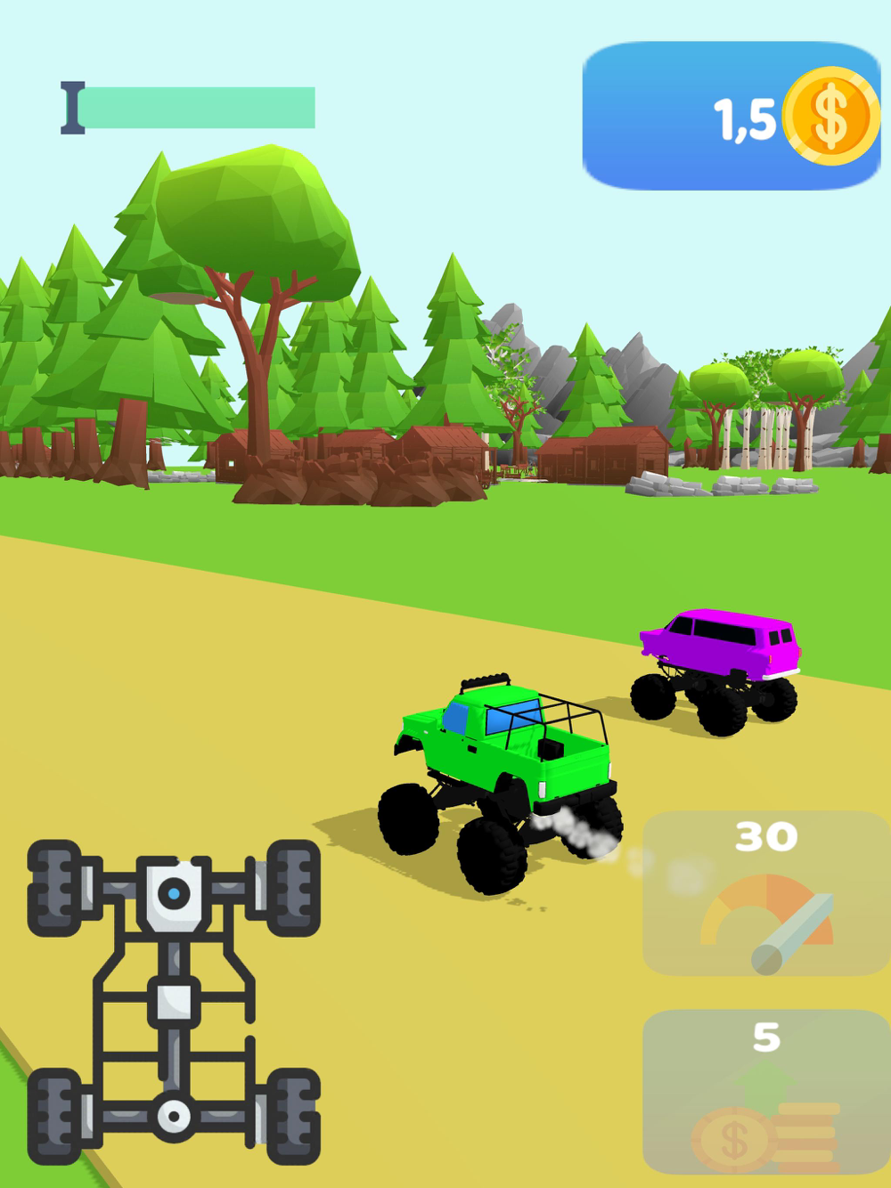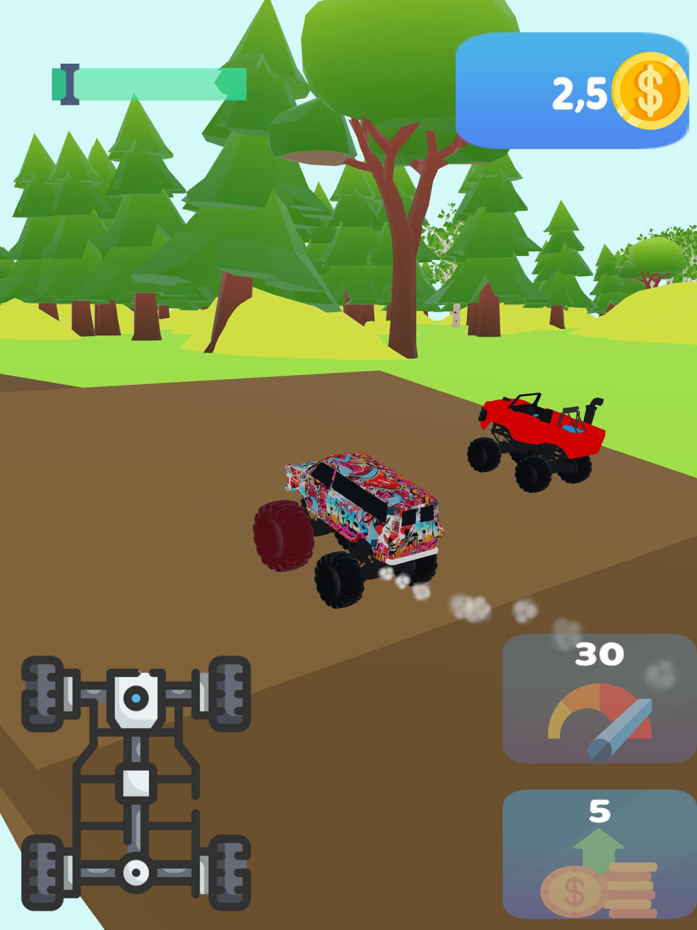 Our monster truck aims to reach the finish line by inflating its tires and quickly dodge the obstacles in front of it!
