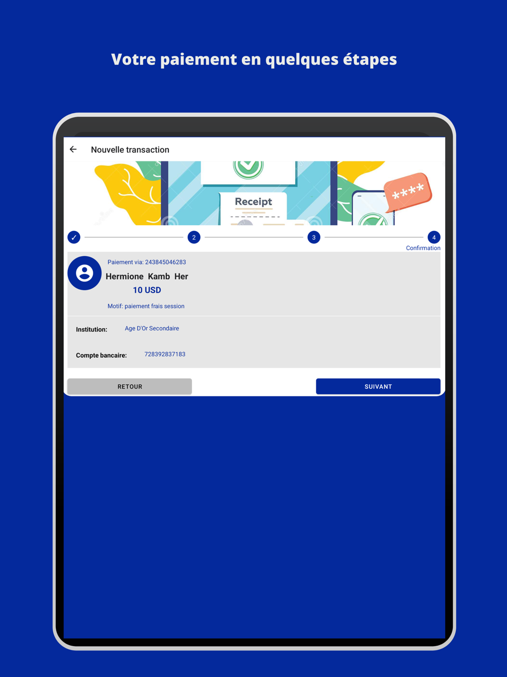 School Pay vous permet de payer les frais scolaires ou académiques de manière simple et rapide via les moyens de paiement mobile.
