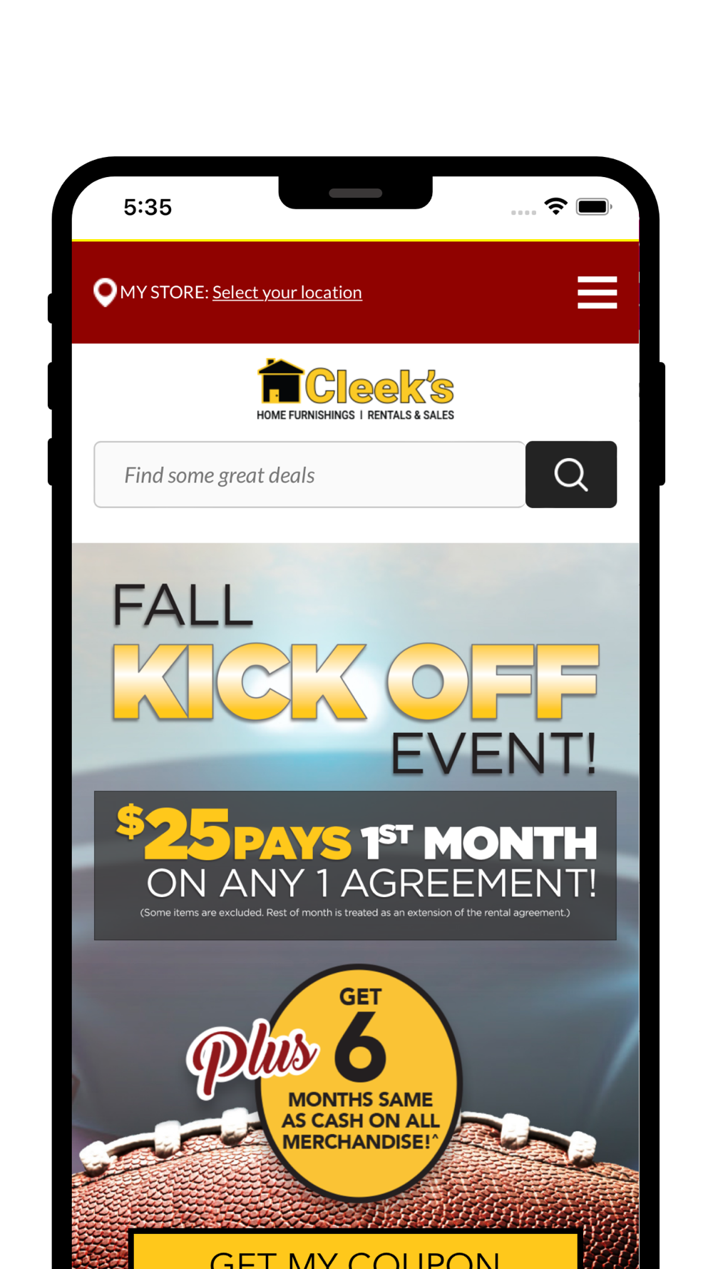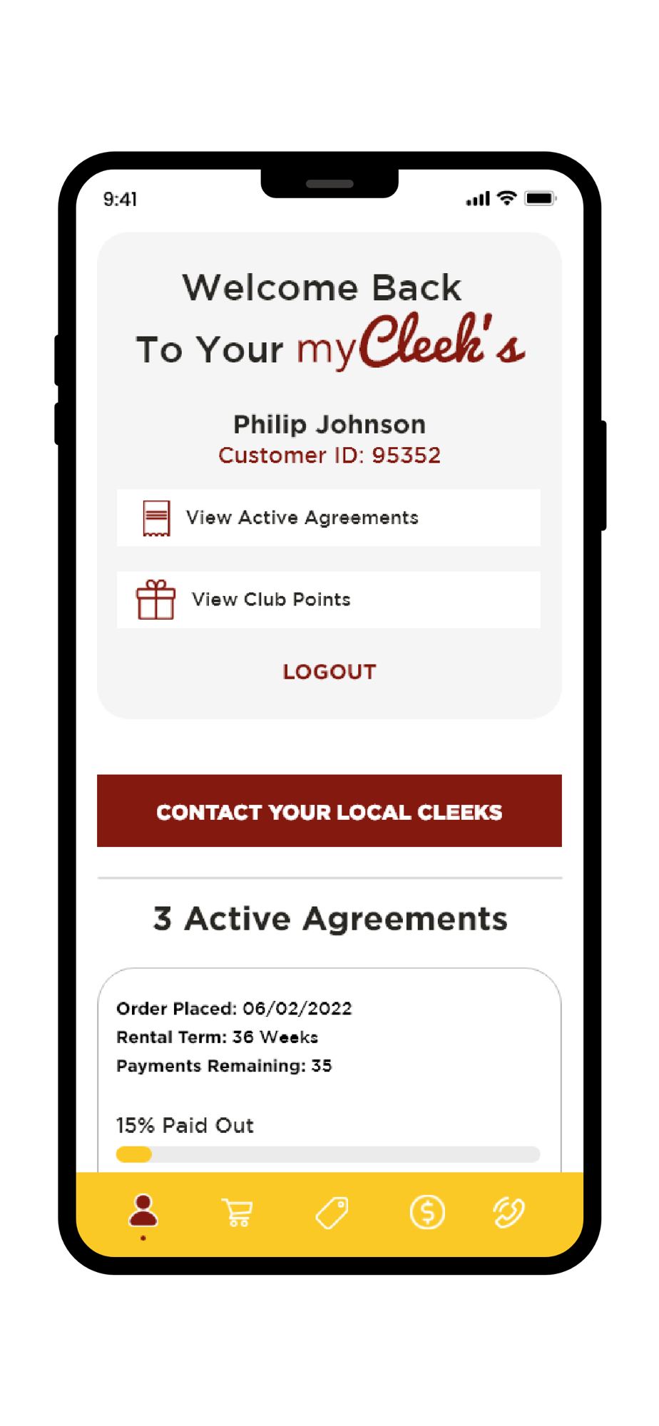 The Cleeks Rent To Own mobile app allows customers to manage their account , Shop products, Receive discounts, and Contact support