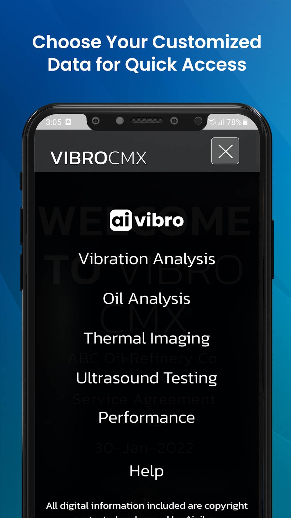 Vibro CMX is your professional guide to analyzing your CBM data through an innovative customized KPI dashboard. It provides quick guidance to ensure your reliability program is running efficiently and effectively, saving money, downtimes, and energy