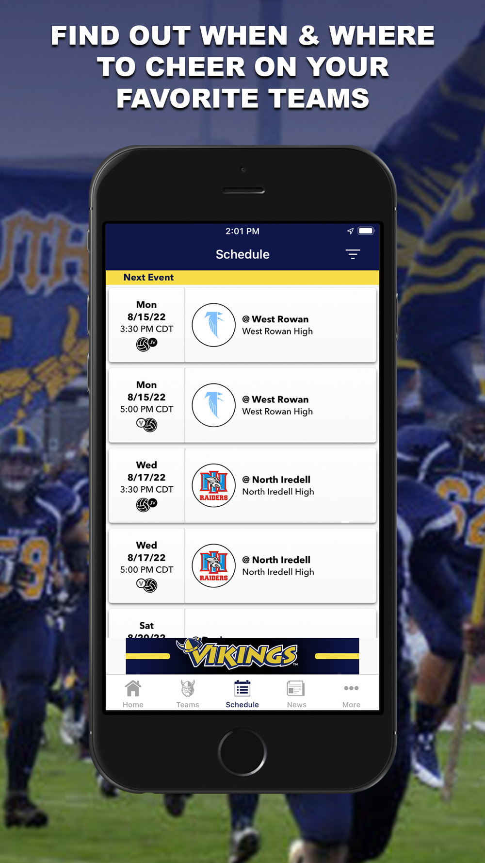 The Official South Iredell Vikings application is your home for South Iredell High School Athletics! Whether you’re on campus or on the go, this app is a must-have for ALL Vikings fans.