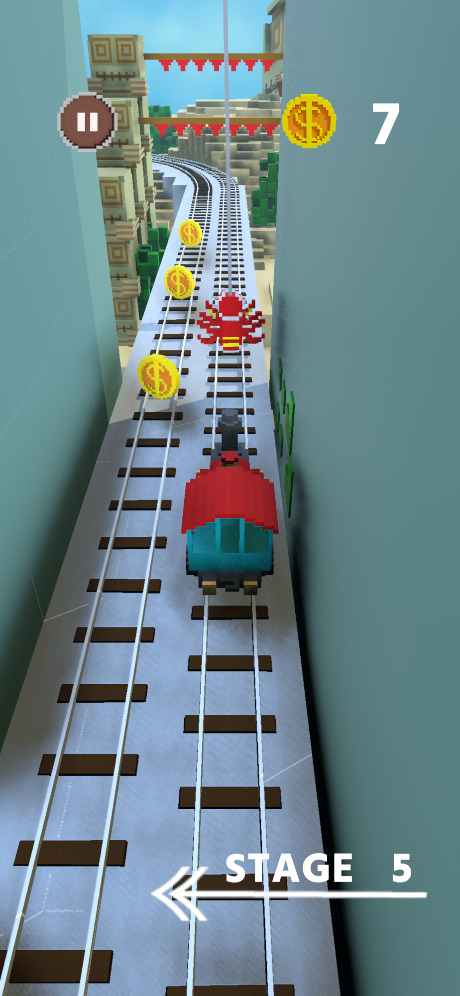 Swipe the train left, right, up, and down to dodge enemies and reach the goal!