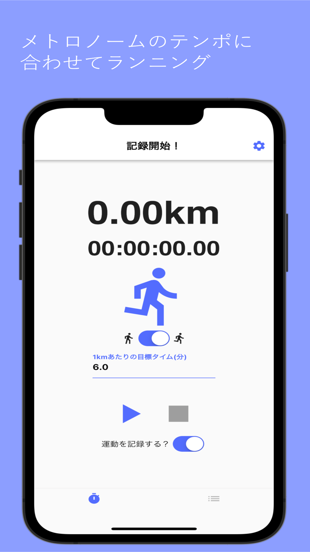 メトロノームのように一定のリズムで流れる音に合わせて走れば、お好きなペースをペースを乱すことなく走れます。