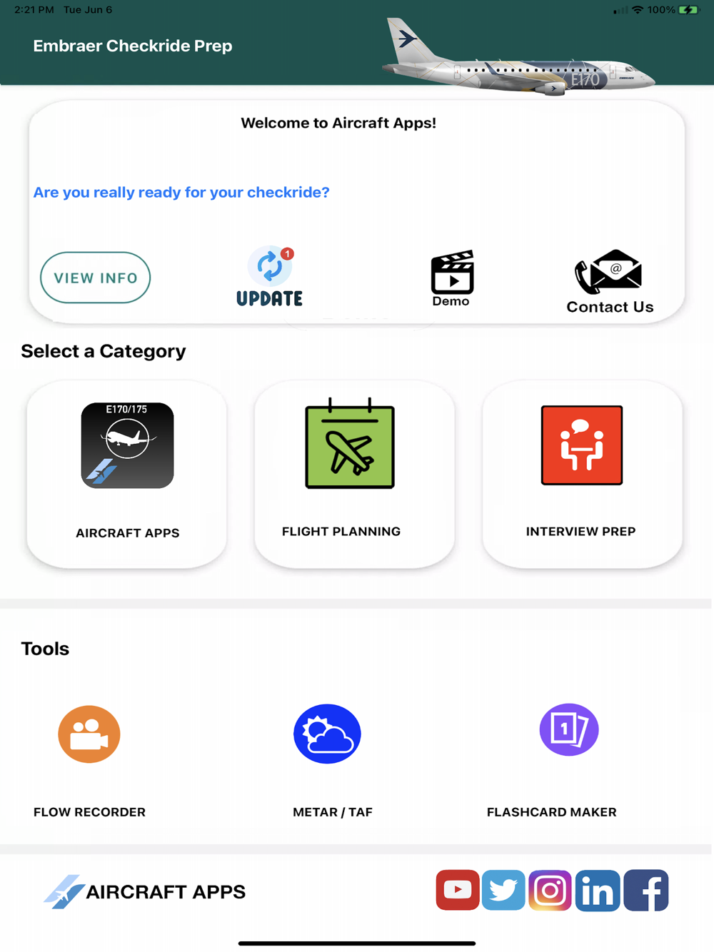 STEP 3: Tap the Buy button under the aircraft you wish to purchase. Your account will be charged a one time price for the material and content. The price is listed on each Aircraft App and the price will be different based on the content in each app.