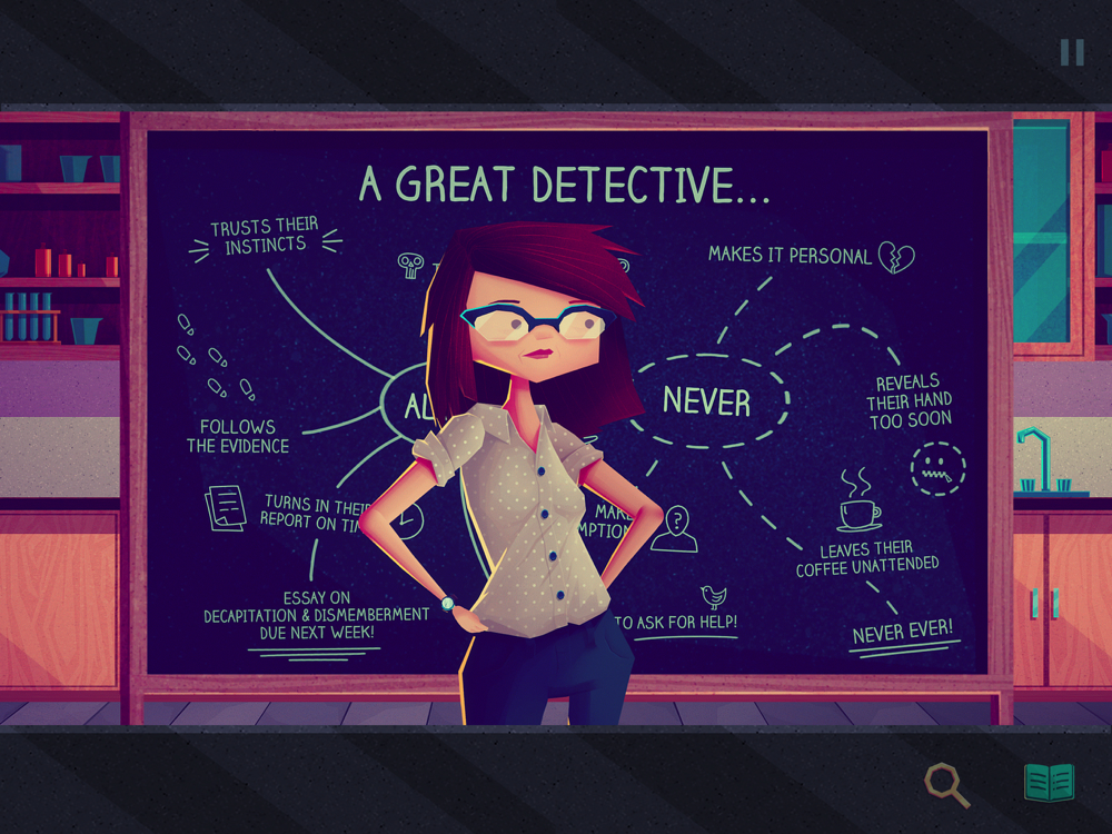 Jenny LeClue weaves a rich metanarrative around a rich story exploring themes of family, loss, and identity. The "author" of Jenny's adventures, Arthur K Finklestein, acts as narrator and guide, but his presence also allows you to make choices that change the way Jenny's story is written. These choices may even affect Finklestein's own story.