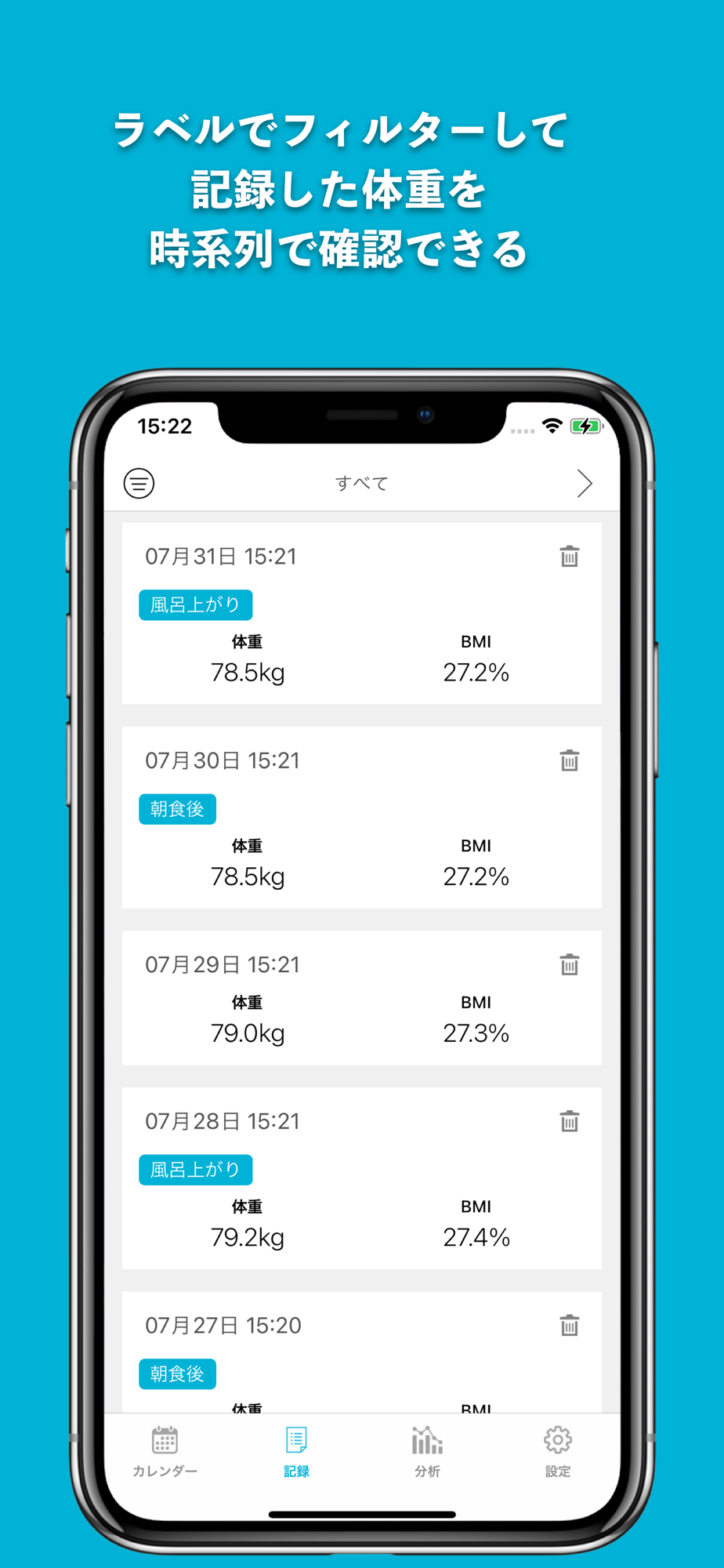 - 体重記録にラベルをつけれます