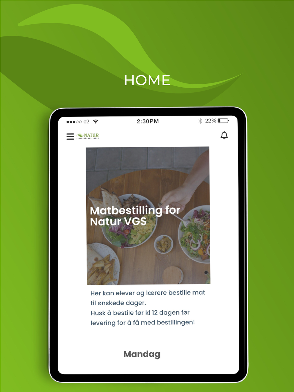 En matbestillingsapp for elever og lærere ved Natur Videregående skole. Du må være registrert på forhånd for å bestille.