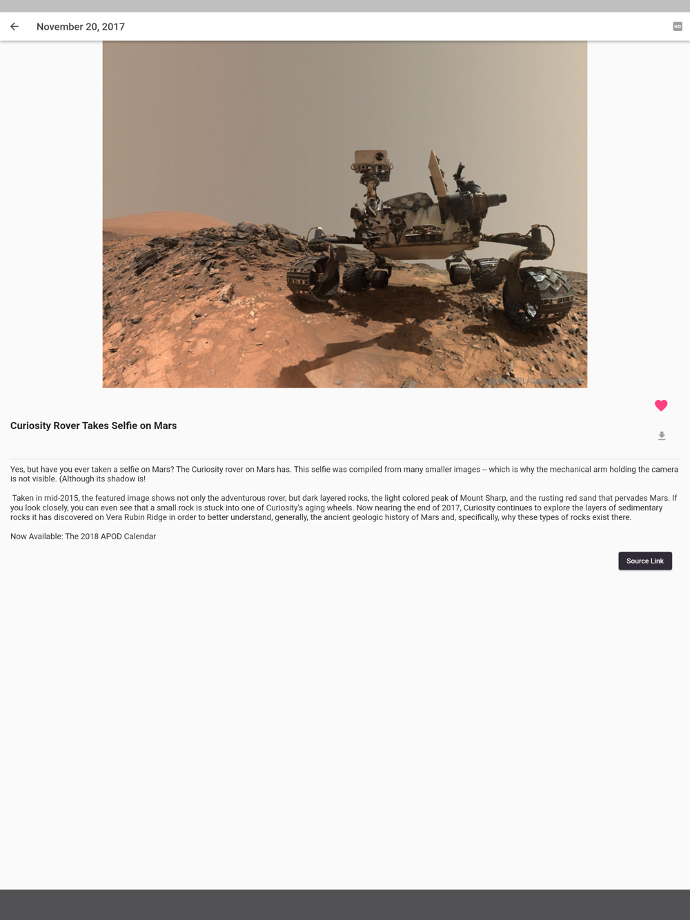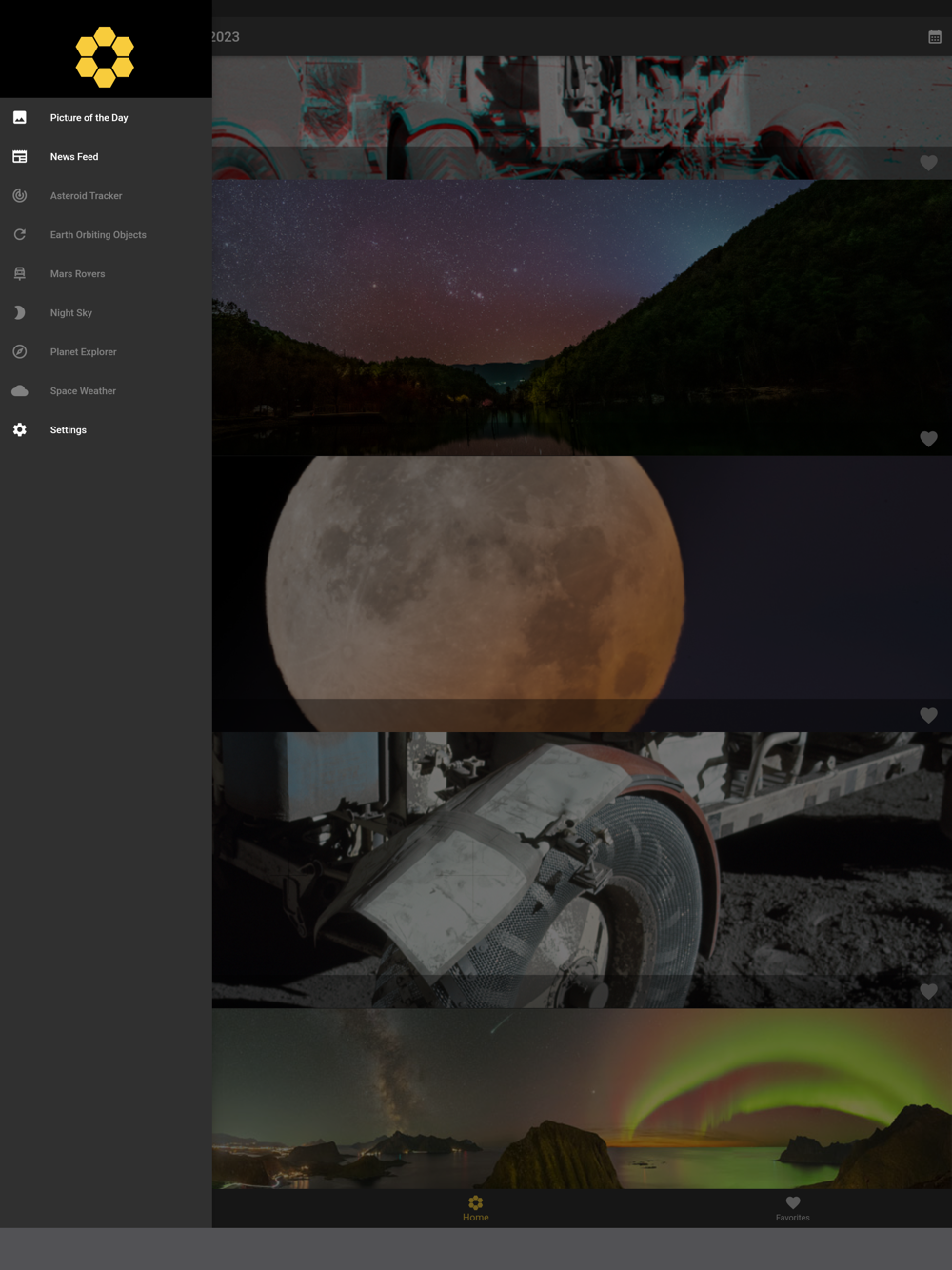 An astronomy and space driven app that provides navigation of NASA's astronomy picture of the day, including daily notifications. Scroll through the latest NASA news and read about the latest developments in space and technology. More content is in the works, so jump onboard!